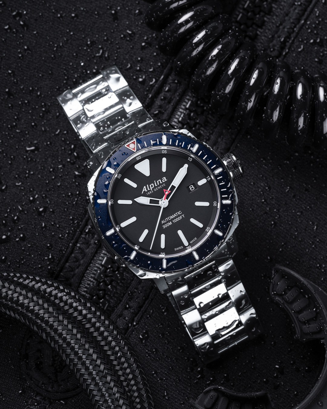 Řada Seastrong je zástupcem elementu vody, respektive moře a potápěčských hodinek Alpina. Kořeny Seastrong sahají až do roku 1969, kdy značka představila legendární model Diver 10 Seastrong s voděodolností do hloubky 200 metrů a dvěma korunkami, z nichž jedna sloužila k ovládání vnitřní otočné lunety. V současnosti najdete v této kolekci širokou variaci modelů navržených pro dobrodružství pod hladinou.