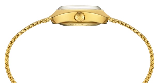 Certina DS-2 Lady Powermatic 80 C024.207.33.111.00 jsou dámské automatické hodinky na kovovém milánském tahu s PVD úpravou zlaté barvy a motýlkovou sponou, které navazují na populární spolehlivý model DS-2 z roku 1968. Pouzdro z nerezové oceli ve tvaru „tonneau“, elipsy zakončené na obou koncích, má průměr 24,8 milimetru a průhledné dýnko. Perleťový číselník s indikací data je chráněn klenutým safírovým sklem s antireflexní vrstvou a jeho krása vyniká zejména pod přímým světlem, kdy můžeme pozorovat hru barev perleti. Aplikované hodinové indexy a ručky ve zlaté barvě jsou pokryty luminiscenčním nátěrem Super-LumiNova®, který garantuje perfektní čitelnost za zhoršených světelných podmínek.