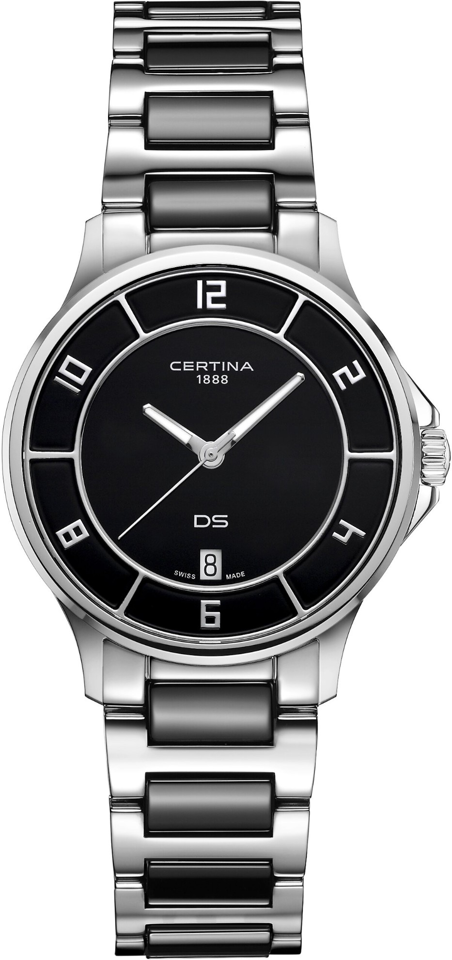 Certina DS-6 Lady C039.251.11.057.00 jsou dámské bateriové hodinky na bicolor náramku kombinujícím ocel a keramiku s motýlkovou sponou. Pouzdro z nerezové oceli v kombinaci brusu a lesku má průměr 35 milimetrů a dýnko značené logem ve tvaru želvy, které reprezentuje robustnost a dlouhou životnost hodinek Certina. Černý číselník s indikací data je chráněn odolným safírovým sklem. Aplikované hodinové indexy jsou doplněny ručkami pokrytými luminiscenčním nátěrem Super-LumiNova®, který garantuje perfektní čitelnost za zhoršených světelných podmínek. Pohon hodinek zajišťuje bateriový strojek ETA F05.412 s technologií Precidrive s přesností +/- 10 sekund za rok a indikací slabé baterie. Hodinky s C.O.S.C. certifikací, která je zárukou vysoké přesnosti nesou označení „Chronometer“. Model disponuje technologií DS (Double Security) používanou a zdokonalovanou již od roku 1959, díky které jsou hodinky odolnější vůči nárazům a mají zvýšenou voděodolnost. Vodotěsnost hodinek činí 10 ATM a jsou tedy vhodné pro koupání nebo šnorchlování.