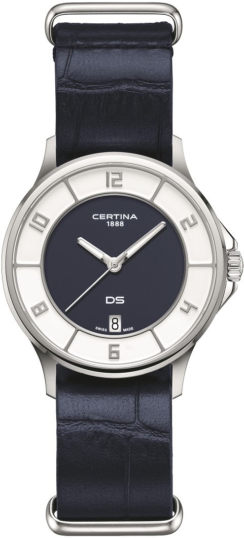 Certina DS-6 Lady C039.251.17.047.00 jsou dámské bateriové hodinky na modrém řemínku z recyklovaných plastových lahví a veganské kůže z jablek. Pouzdro z nerezové oceli má průměr 35 milimetrů a dýnko s logem ve tvaru želvy, které reprezentuje robustnost a dlouhou životnost hodinek Certina. Modro-bílý číselník s indikací data je chráněn odolným safírovým sklem. Aplikované hodinové indexy jsou doplněny ručkami pokrytými luminiscenčním nátěrem Super-LumiNova®, který garantuje perfektní čitelnost za zhoršených světelných podmínek. Pohon hodinek zajišťuje bateriový strojek ETA F05.412 s technologií Precidrive s přesností +/- 10 sekund za rok a indikací slabé baterie. Hodinky s C.O.S.C. certifikací, která je zárukou vysoké přesnosti nesou označení „Chronometer“. Model disponuje technologií DS (Double Security) používanou a zdokonalovanou již od roku 1959, díky které jsou hodinky odolnější vůči nárazům a mají zvýšenou voděodolnost. Vodotěsnost hodinek činí 10 ATM a jsou tedy vhodné pro koupání nebo šnorchlování.