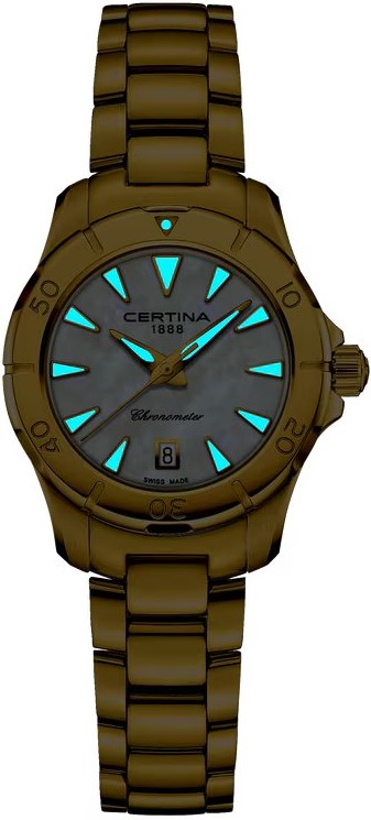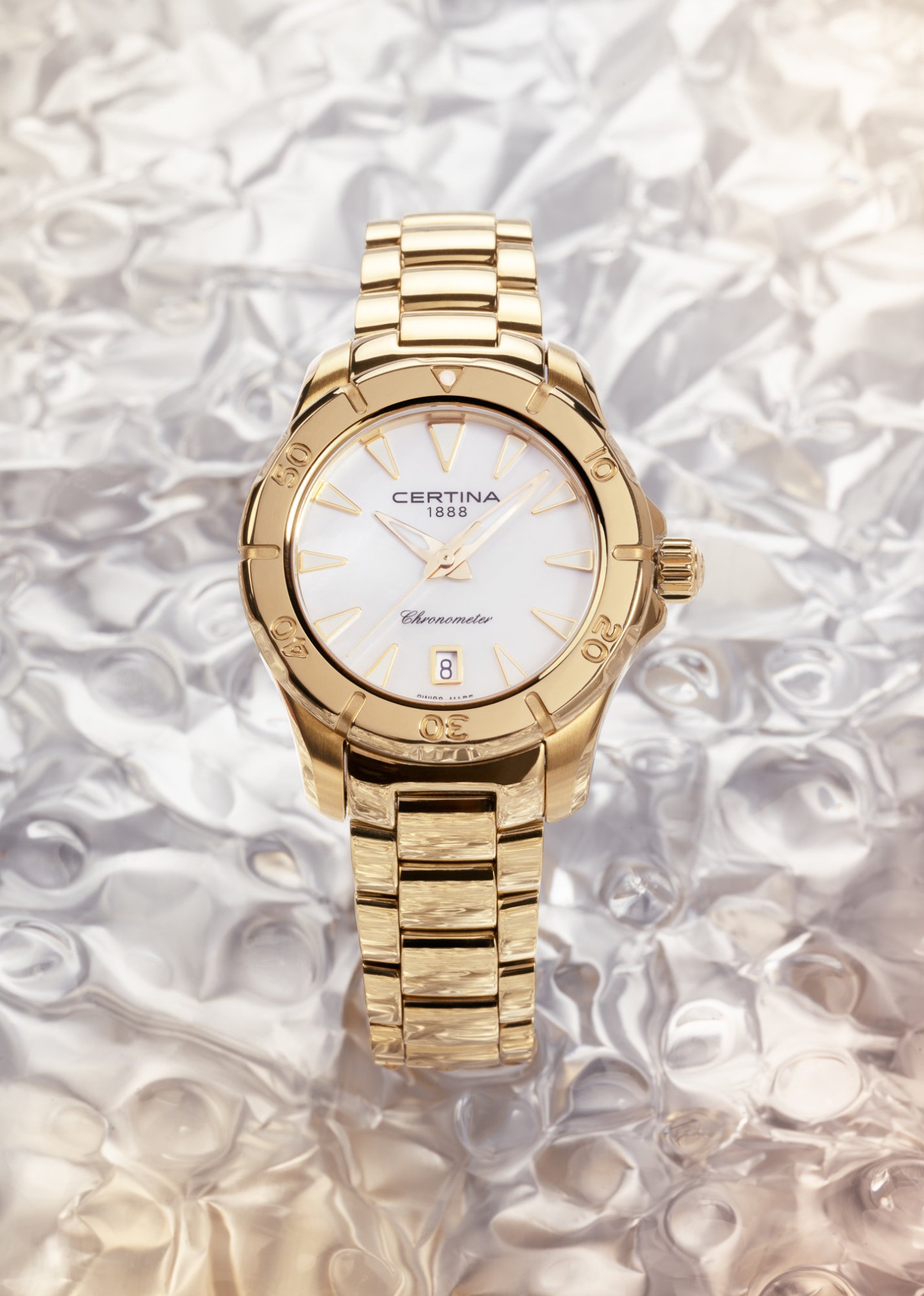 Chronometer (C.O.S.C.), ukazatel stavu nabití, datum, indikace slabé baterie, šroubovací korunka