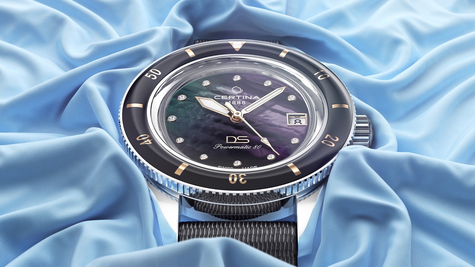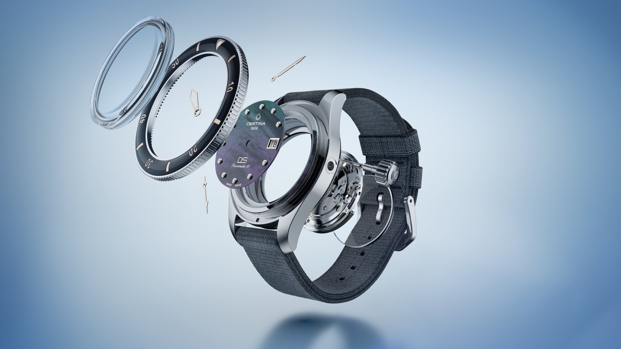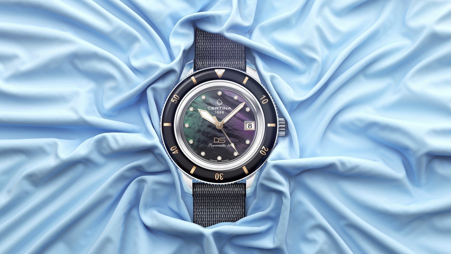 Certina DS PH200M Powermatic 80 C036.207.18.126.00 jsou dámské automatické hodinky na textilním řemínku z materiálu #tide ocean, který spojuje dobrý vzhled s dobrou věcí: materiál je vyroben z plastů vylovených ze světových oceánů. Hodinky svým designem navazují na dnes již kultovní model PH200M z roku 1967. Pouzdro z nerezové oceli v kombinaci brusu a lesku má průměr 39 milimetrů, jednosměrně otočnou lunetu s jemně vypouklou keramickou vložkou s potápěčskou stupnicí a průhledné dýnko. Modro-černý perleťový číselník s indikací data je chráněn vypouklým safírovým sklem s antireflexní vrstvou a jeho krása vyniká zejména pod přímým světlem, kdy můžeme pozorovat hru barev perleti. Hodinové indexy jsou tvořeny 11 diamanty a ručky s částí lunety jsou pokryty luminiscenčním nátěrem Super-LumiNova®, který garantuje perfektní čitelnost za zhoršených světelných podmínek. Pohon hodinek zajišťuje mechanický strojek Powermatic 80.611 s automatickým nátahem a rezervou chodu přibližně 80 hodin. Kalibr je vybaven vláskem setrvačky Nivachron™, což je speciální antimagnetický materiál, díky kterému jsou hodinky velmi odolné vůči magnetickým polím. Tento strojek s funkcí hackingu lze v případě potřeby natahovat i ručně pomocí šroubovací korunky. Model disponuje technologií DS (Double Security) používanou a zdokonalovanou již od roku 1959, díky které mají hodinky zvýšenou odolnost vůči nárazům a vodě. Vodotěsnost hodinek činí 20 ATM a jsou tak vhodnou volbou pro šnorchlování a potápění.