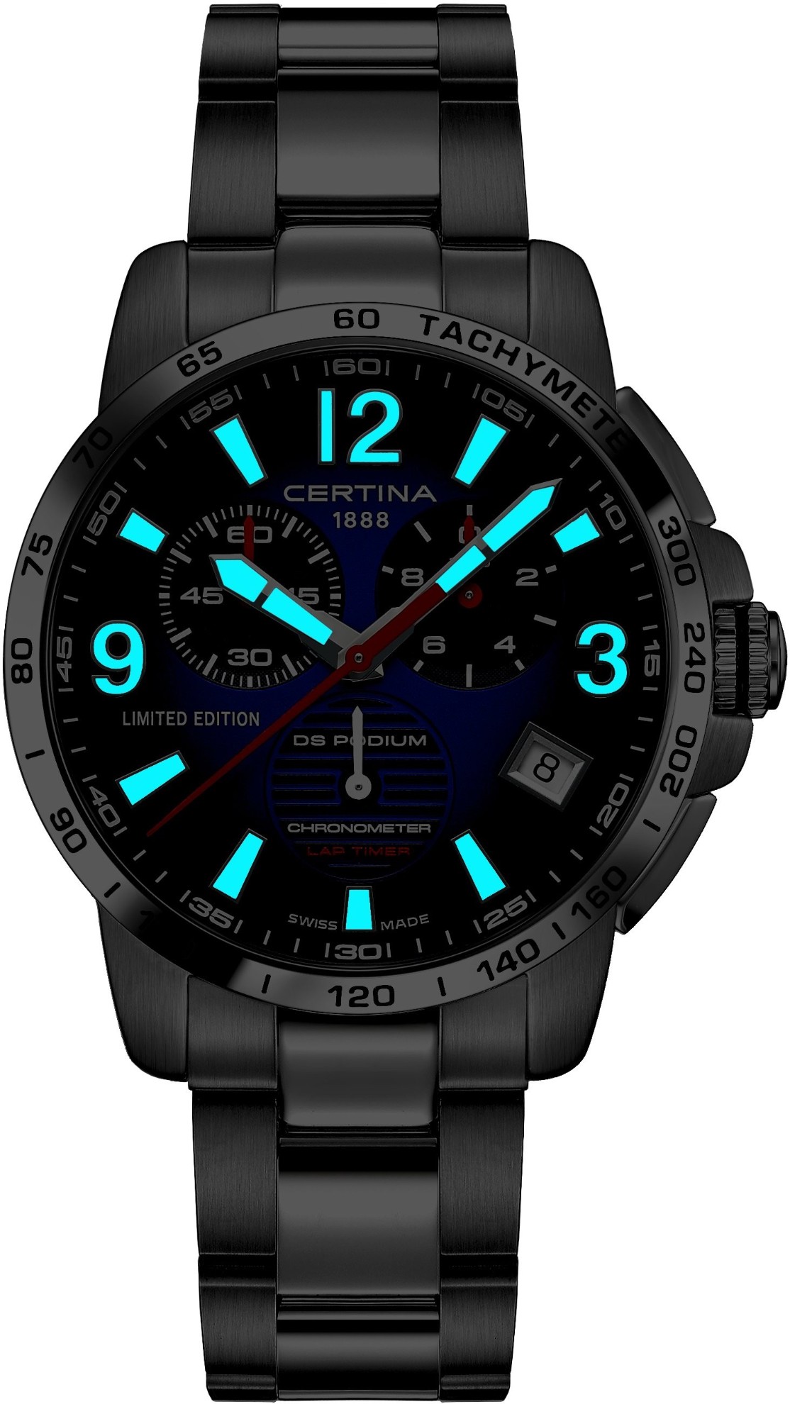 Certina DS Podium Lap Timer Jeremy Seewer 91 Limited Edition C034.453.11.047.10 jsou pánské bateriové hodinky na ocelovém náramku s motýlkovou sponou. Jedná se o limitovanou edici v počtu 450 kusů pro celý svět, připravenou na počest motokrosového závodníka Jeremy Seewera. Pouzdro z nerezové oceli v kombinaci brusu a lesku má průměr 42 milimetrů, speciálně značené dýnko a pevnou lunetu s tachymetrickou stupnicí, kterou lze v kombinaci se stopkami využít pro měření rychlosti pohybujících se objektů. Modrý gradientní číselník s indikací data a chronografem je chráněn odolným safírovým sklem s antireflexní vrstvou. Hodinové indexy jsou spolu s ručkami pokryty luminiscenčním nátěrem Super-LumiNova®, který garantuje perfektní čitelnost za zhoršených světelných podmínek. Ručky chronografu i centrální sekundová ručka jsou vyvedeny v kontrastní červené barvě, která dotváří sportovní vzhled modelu. Pohon hodinek zajišťuje quartzový strojek ETA G10.212 s technologií Precidrive s přesností +/- 10 sekund za rok a indikací slabé baterie. Hodinky s C.O.S.C. certifikací, která je zárukou vysoké přesnosti, nesou označení „Chronometer“. Model disponuje technologií DS (Double Security) používanou a zdokonalovanou již od roku 1959, díky které mají hodinky zvýšenou odolnost vůči nárazům a vodě. Vodotěsnost hodinek činí 10 ATM a jsou tedy vhodné pro koupání nebo šnorchlování.