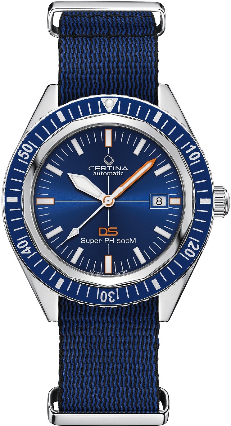 Certina DS Super PH500M C037.407.18.040.10 jsou pánské automatické hodinky na modro-černém NATO řemínku s trnovou sponou. Pouzdro z nerezové oceli v kombinaci brusu a lesku má průměr 43 milimetrů, jednosměrně otočnou lunetu s hliníkovou vložkou s potápěčskou stupnicí a dýnko značené logem Sea Turtle Conservancy, se kterou byla tato speciální edice připravována. Modrý číselník s efektem slunečního brusu a indikací data je linkami dělen na sektory a chráněn odolným safírovým sklem s antireflexní vrstvou. Hodinové indexy jsou společně s ručkami a částí lunety pokryty luminiscenčním nátěrem Super-LumiNova®, který garantuje perfektní čitelnost za zhoršených světelných podmínek. Pohon hodinek zajišťuje mechanický strojek Powermatic 80.611 s automatickým nátahem a rezervou chodu přibližně 80 hodin. Kalibr je vybaven vláskem setrvačky Nivachron™, což je speciální antimagnetický materiál, díky kterému jsou hodinky velmi odolné vůči magnetickým polím. Tento strojek s funkcí hackingu lze v případě potřeby natahovat i ručně pomocí šroubovací korunky. Model disponuje technologií DS (Double Security) používanou a zdokonalovanou již od roku 1959, díky které mají hodinky zvýšenou odolnost vůči nárazům a vodě. Vodotěsnost hodinek činí 50 ATM a s certifikací ISO 6425 jsou vhodnou volbou pro přístrojové potápění.