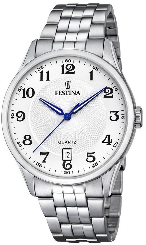 Festina Classics 20425/1 jsou pánské bateriové hodinky v klasickém stylu na ocelovém náramku s překlápěcí sponou. Pouzdro z nerezové oceli má průměr 43 milimetrů. Bílý číselník s radiální strukturou a ukazatelem data na šesté hodině je chráněn odolným minerálním sklíčkem. Ručičky mají luminiscenční nátěr, který po nasvícení usnadňuje čitelnost za zhoršených světelných podmínek. Chod hodinek zajišťuje quartzový strojek Miyota 2415 s přesností ±20 sekund za měsíc. S vodotěsností 5 ATM jsou hodinky odolné proti dešti a při sprchování.