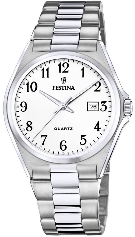 Festina Classics 20552/1 jsou pánské bateriové hodinky v klasickém stylu na ocelovém náramku v kombinaci matu a lesku s překlápěcí sponou. Pouzdro z nerezové oceli má průměr 40 milimetrů. Přehledný bílý číselník s ukazatelem data na třetí hodině je chráněn odolným minerálním sklíčkem. Ručičky mají luminiscenční nátěr, který po nasvícení usnadňuje čitelnost za zhoršených světelných podmínek. Chod hodinek zajišťuje quartzový strojek Miyota GM12 s přesností ±20 sekund za měsíc. S vodotěsností 5 ATM jsou hodinky odolné proti dešti a při sprchování.