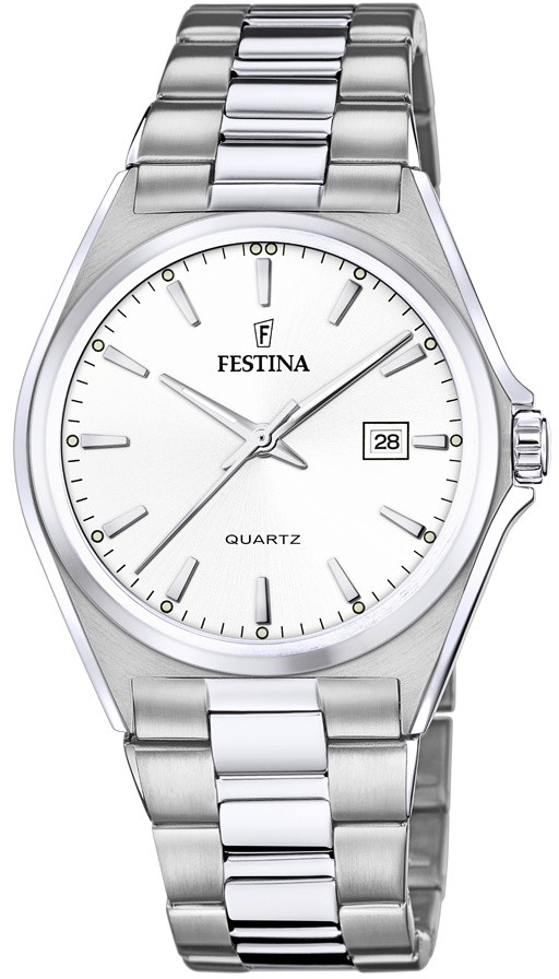 Festina Classics 20552/2 jsou pánské bateriové hodinky v klasickém stylu na ocelovém náramku v kombinaci matu a lesku s překlápěcí sponou. Pouzdro z nerezové oceli má průměr 40 milimetrů. Přehledný bílý číselník s ukazatelem data na třetí hodině je chráněn odolným minerálním sklíčkem. Ručičky mají luminiscenční nátěr, který po nasvícení usnadňuje čitelnost za zhoršených světelných podmínek. Chod hodinek zajišťuje quartzový strojek Miyota GM12 s přesností ±20 sekund za měsíc. S vodotěsností 5 ATM jsou hodinky odolné proti dešti a při sprchování.