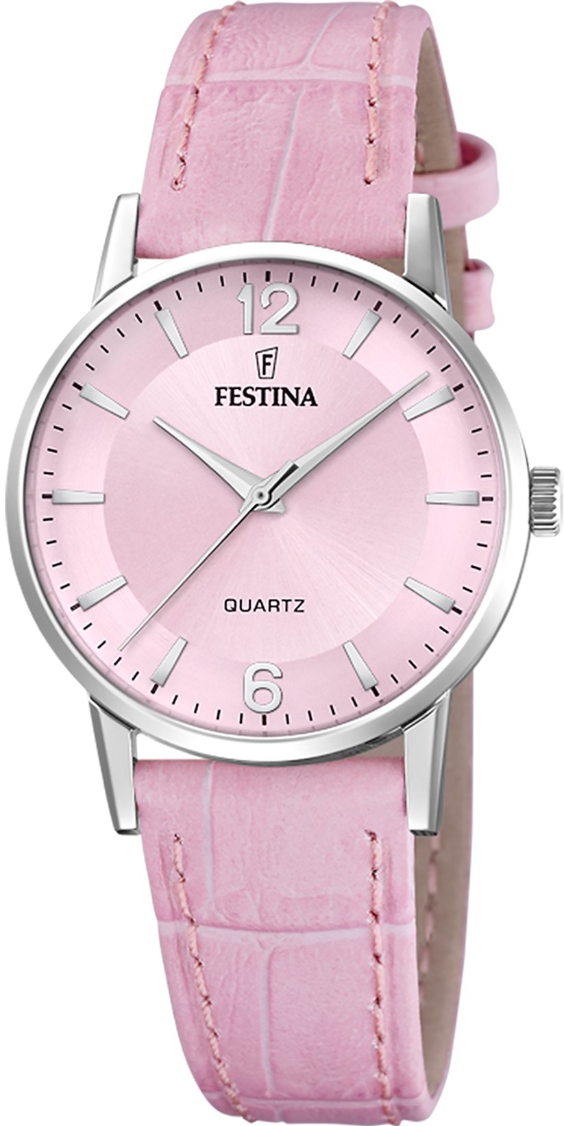 Festina Classics 20691/3 jsou dámské elegantní bateriové hodinky na růžovém koženém řemínku s trnovou sponou. Pouzdro z nerezové oceli má průměr 29 milimetrů. Růžový číselník s efektem slunečního brusu je chráněn odolným minerálním sklíčkem. Chod hodinek zajišťuje quartzový strojek Miyota 2035 s přesností ±20 sekund za měsíc. S vodotěsností 3 ATM jsou hodinky odolné proti dešti a při mytí rukou.