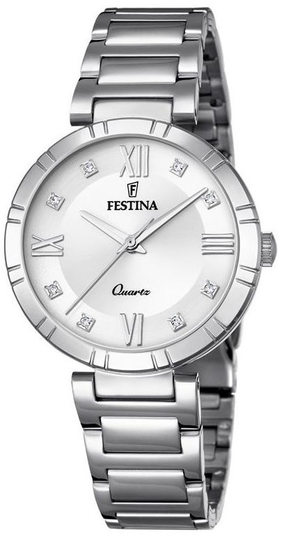 Festina Mademoiselle 16936/A jsou dámské bateriové hodinky v klasickém stylu na ocelovém náramku s překlápěcí sponou. Pouzdro z nerezové oceli má průměr 32,5 milimetru. Stříbrný číselník s efektem slunečního brusu zdobený 8 čirými zirkony je chráněn odolným minerálním sklíčkem. Pohon hodinek zajišťuje quartzový strojek Miyota 2035 s přesností ±20 sekund za měsíc. S vodotěsností 5 ATM jsou hodinky odolné proti dešti a při sprchování.