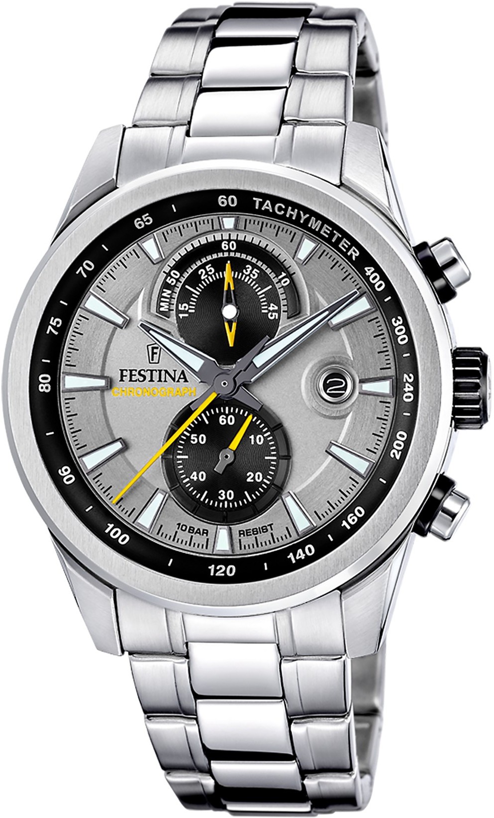 Festina Timeless Chronograph 20694/4 jsou pánské sportovní bateriové hodinky na ocelovém náramku s překlápěcí sponou. Pouzdro z nerezové oceli má průměr 44 milimetrů a černou vnitřní lunetu s tachymetrickou stupnicí. Šedo-černý číselník s ukazatelem data a stopkami je chráněn odolným minerálním sklíčkem. Ručičky a indexy disponují luminiscenčním nátěrem, který po nasvícení usnadňuje čitelnost za zhoršených světelných podmínek. Hodinky pohání quartzový strojek Miyota 0S11 s přesností ±20 sekund za měsíc. S vodotěsností 10 ATM jsou hodinky vhodné pro plavání či šnorchlování.