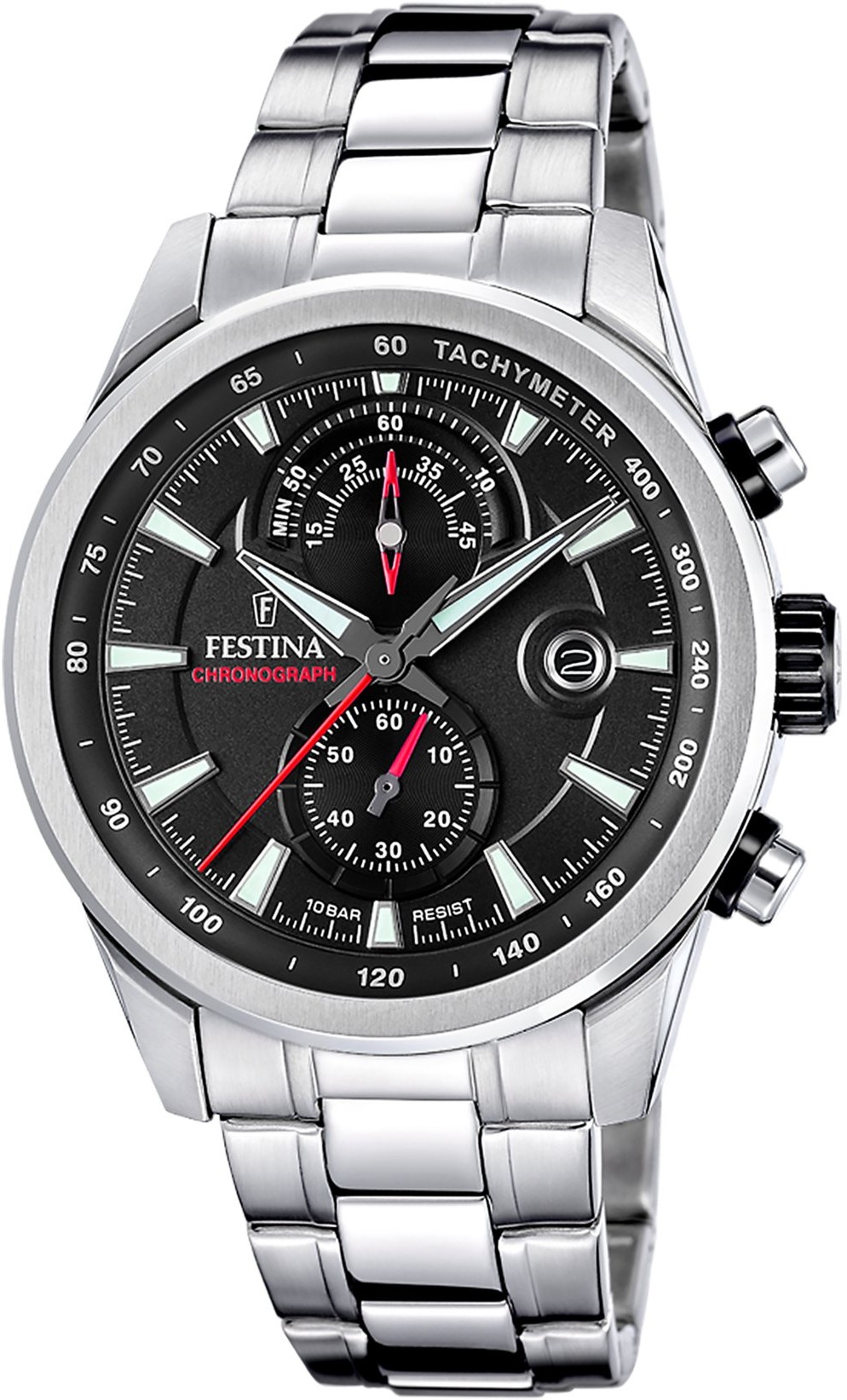 Festina Timeless Chronograph 20694/6 jsou pánské sportovní bateriové hodinky na ocelovém náramku s překlápěcí sponou. Pouzdro z nerezové oceli má průměr 44 milimetrů a černou vnitřní lunetu s tachymetrickou stupnicí. Černý číselník s ukazatelem data a stopkami je chráněn odolným minerálním sklíčkem. Ručičky a indexy disponují luminiscenčním nátěrem, který po nasvícení usnadňuje čitelnost za zhoršených světelných podmínek. Hodinky pohání quartzový strojek Miyota 0S11 s přesností ±20 sekund za měsíc. S vodotěsností 10 ATM jsou hodinky vhodné pro plavání či šnorchlování.