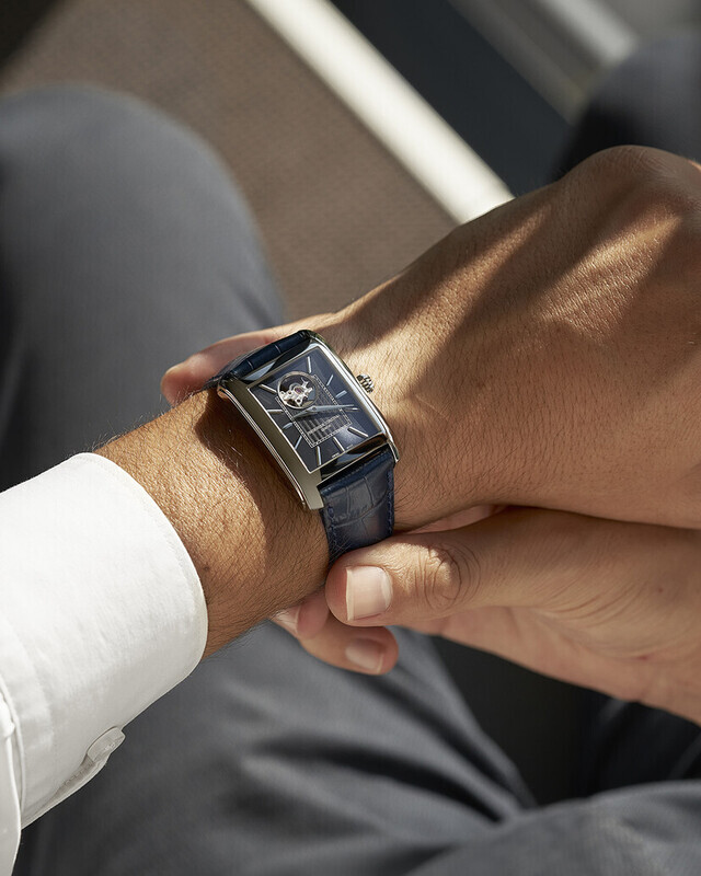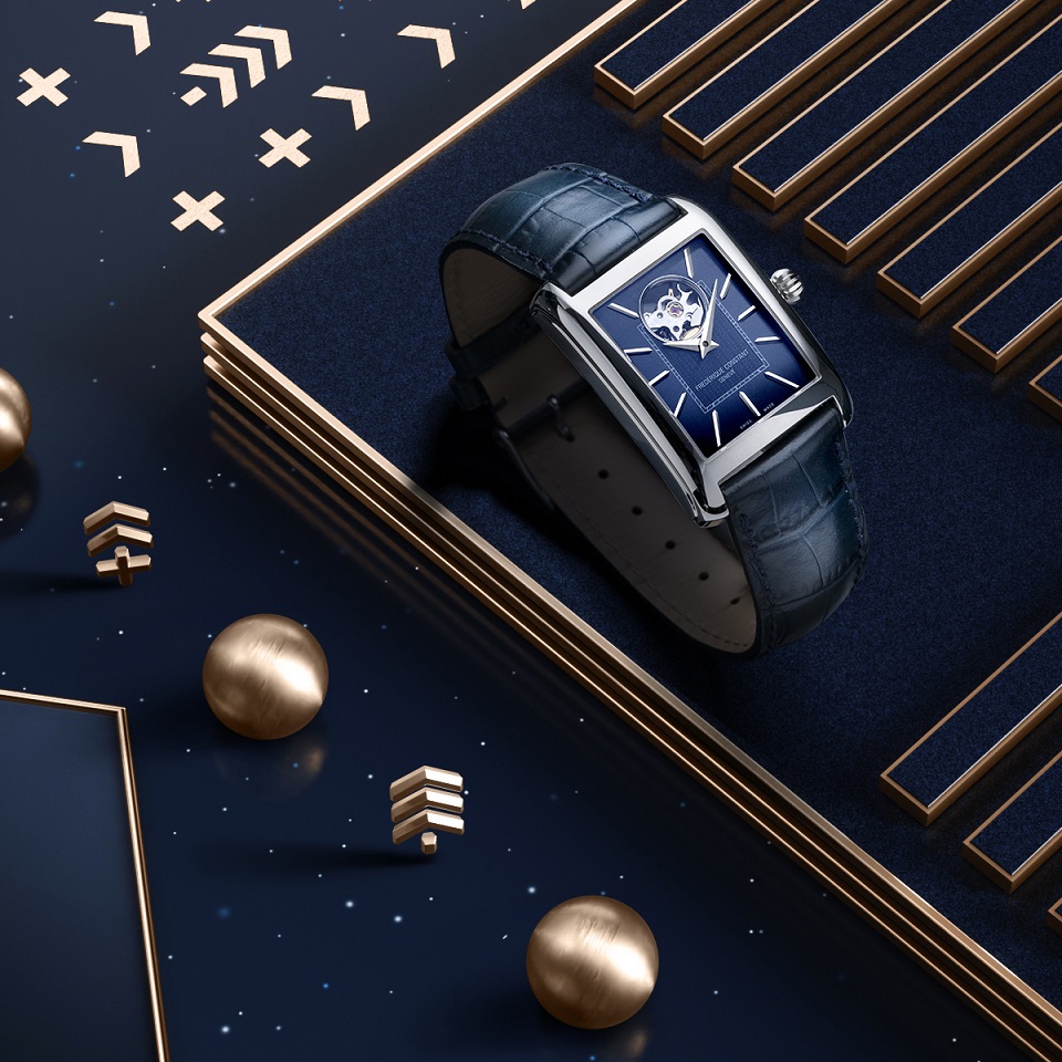 Frederique Constant Classics Carrée Heart Beat Automatic FC-311N4C6 jsou pánské automatické hodinky na modrém koženém řemínku s trnovou sponou. Hranaté pouzdro z nerezové oceli má rozměry 30,4 x 33,3 milimetru, průhledné dýnko a zdobenou korunku. Tyto elegantní hodinky využijete pro každodenní nošení. Modrý číselník s efektem slunečního brusu, průhledem na samotné srdce strojku (setrvačku) a středem zdobeným giloší je chráněn odolným safírovým sklem. Aplikované hodinové indexy doplňují elegantní dauphine ručky. Pohon hodinek zajišťuje mechanický strojek FC-311 s automatickým nátahem a rezervou chodu přibližně 38 hodin. Základem kalibru je Sellita SW200. Tento strojek s funkcí hackingu lze v případě potřeby natahovat i ručně pomocí korunky. S vodotěsností 3 ATM jsou hodinky odolné proti vlhkosti a dešti.