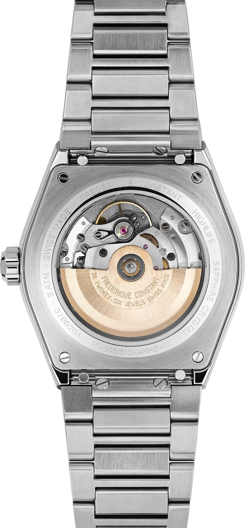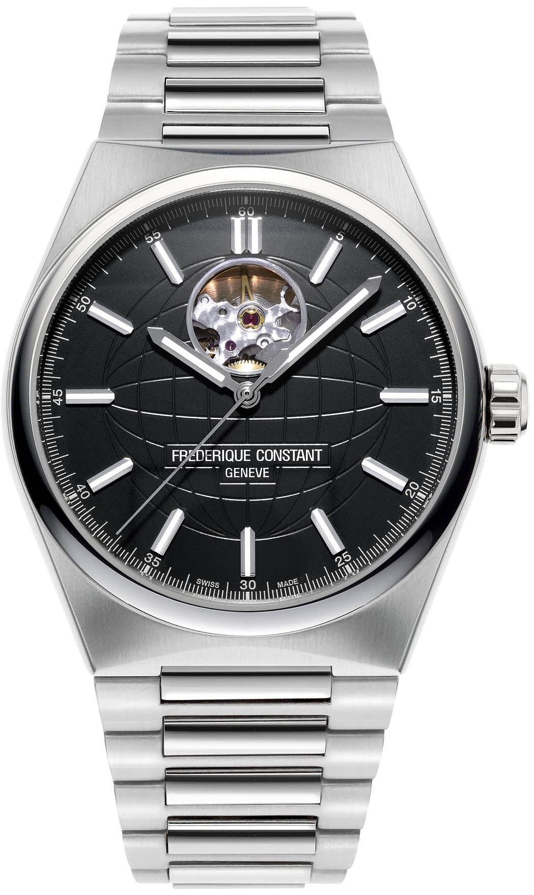 Frederique Constant Highlife Automatic Heart Beat FC-310B4NH6B jsou pánské automatické hodinky na integrovaném ocelovém náramku v kombinaci brusu a lesku s motýlkovou sponou. Pouzdro z nerezové oceli má průměr 41 milimetrů, signovanou korunku a průhledné dýnko. Tyto univerzální hodinky v klasickém designu využijete pro každodenní nošení. Černý číselník s motivem zeměkoule je chráněn odolným safírovým sklem s antireflexní vrstvou a upoutá pozornost průhledem na samotné srdce strojku (setrvačku). Aplikované hodinové indexy jsou společně s ručkami pokryty luminiscenčním nátěrem Super-LumiNova®, který garantuje perfektní čitelnost za zhoršených světelných podmínek. Pohon hodinek zajišťuje mechanický strojek FC-310 s automatickým nátahem a rezervou chodu přibližně 38 hodin. Základem kalibru je Sellita SW200. Tento strojek s funkcí hackingu lze v případě potřeby natahovat i ručně pomocí korunky. Vodotěsnost hodinek činí 5 ATM a jsou tedy odolné proti dešti a při sprchování. Součástí balení je náhradní pryžový řemínek černé barvy.