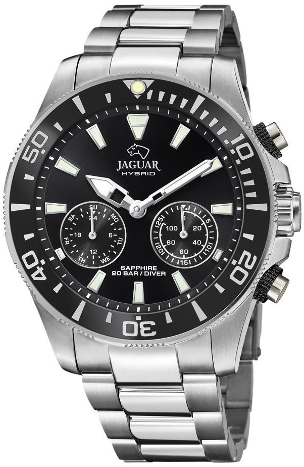 Jaguar Hybrid jsou hodinky spárované s vaším smartphonem pomocí aplikace Jaguar Connected, která je k dispozici pro systémy Android a iOS. Vynikají tím, že na první pohled nepůsobí jako běžné chytré hodinky, avšak mohou nabídnout hned 15 zajímavých užitečných funkcí podrobně popsaných níže. Baterie hodinek má životnost přes dva roky, všechny modely jsou vodotěsné do 200 metrů.