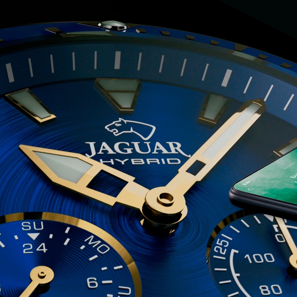 Jaguar Hybrid jsou hodinky spárované s vaším smartphonem pomocí aplikace Jaguar Connected, která je k dispozici pro systémy Android a iOS. Vynikají tím, že na první pohled nepůsobí jako běžné chytré hodinky, avšak mohou nabídnout hned 15 zajímavých užitečných funkcí podrobně popsaných níže. Baterie hodinek má životnost přes dva roky, všechny modely jsou vodotěsné do 200 metrů.