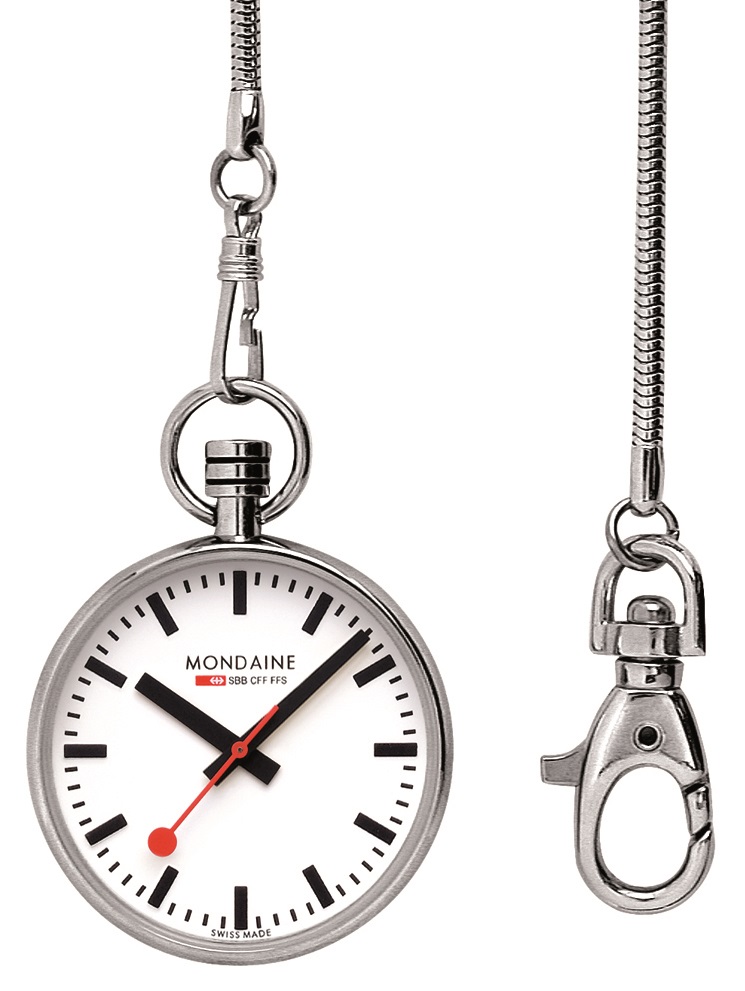 Mondaine A660.30316.11SBB jsou unisex bateriové kapesní hodinky s ocelovým pouzdrem o průměru 43 milimetrů. Bílý číselník s ukazatelem data je chráněn minerálním sklíčkem a je inspirován ikonickými nádražními hodinami s červenou sekundovou ručkou. Pohon hodinek zajišťuje quartzový strojek Ronda 513.