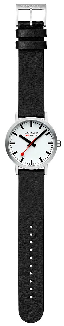 MONDAINE Classic A660.30360.16SBBV jsou pánské elegantní hodinky na černém řemínku z veganské kůže s trnovou sponou. Pouzdro z nerezové oceli má průměr 40 milimetrů. Přehledný bílý číselník je chráněn minerálním sklíčkem a je inspirován ikonickými nádražními hodinami s červenou sekundovou ručkou. Pohon hodinek zajišťuje quartzový strojek Ronda 513. S vodotěsností 3 ATM jsou hodinky odolné proti dešti a při mytí rukou.