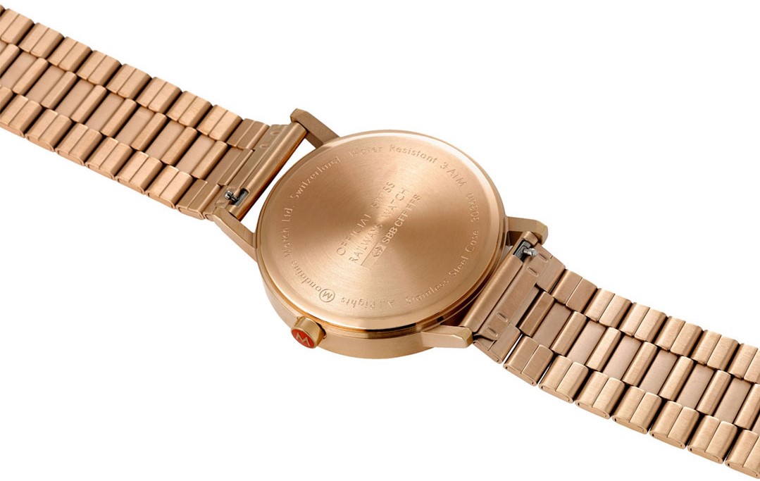 MONDAINE Classic A660.30360.16SBR jsou pánské hodinky v klasickém stylu na ocelovém náramku s povrchovou PVD úpravou v barvě růžového zlata a posuvnou sponou. Pouzdro z nerezové oceli ve stejné barvě má průměr 40 milimetrů. Přehledný černý číselník je chráněn minerálním sklíčkem a je inspirován ikonickými nádražními hodinami s červenou sekundovou ručkou. Pohon hodinek zajišťuje quartzový strojek Ronda 513. S vodotěsností 3 ATM jsou hodinky odolné proti dešti a při mytí rukou.