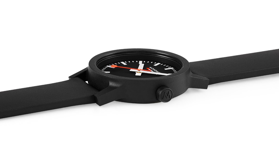 MONDAINE Essence MS1.32120.RB jsou dámské hodinky na černém plastovém řemínku na bázi ricinového oleje s trnovou sponou. Pouzdro o průměru 32 milimetrů je vyrobeno z recyklovaného plastu. Přehledný černý číselník je chráněn minerálním sklíčkem a je inspirován ikonickými nádražními hodinami s červenou sekundovou ručkou. Pohon hodinek zajišťuje quartzový strojek Ronda 513. S vodotěsností 3 ATM jsou hodinky odolné proti dešti a při mytí rukou.