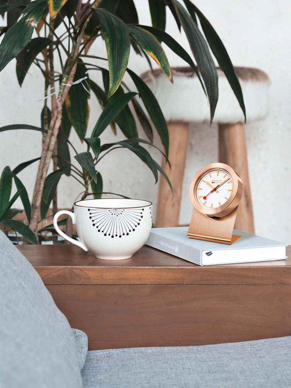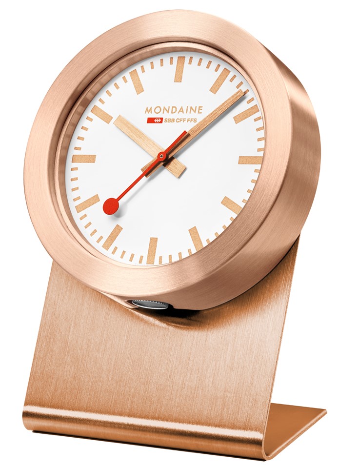 MONDAINE A660.30318.82SBK jsou hodiny, jejichž hliníkové pouzdro v barvě růžového zlata má průměr 50 milimetrů. Díky magnetu, který je umístěn na zadní straně, můžete hodiny umístit buď na stojánek, který je součástí balení nebo na jakékoliv jiné kovové povrchy. Číselník v bílé barvě je chráněn tvrzeným minerálním sklem a je inspirován ikonickými nádražními hodinami s červenou sekundovou ručkou. Pohon hodinek je zajištěn quartzovým strojkem.
