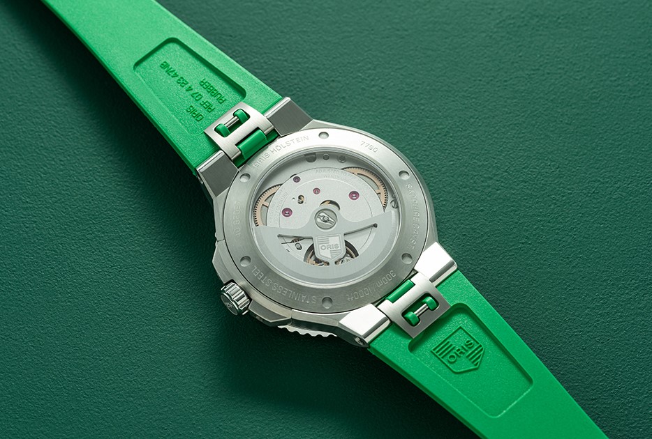 Oris Aquis Date 01 400 7790 4157-07 4 23 47EB jsou pánské automatické hodinky na zeleném kaučukovém řemínku s překlápěcí sponou. Pouzdro z nerezové oceli má průměr 43,5 milimetru, průhledné dýnko a jednosměrně otočnou lunetu s keramickou vložkou s potápěčskou stupnicí. Zelený číselník s efektem slunečního brusu a indikací data na šesté hodině je chráněn odolným safírovým sklem s antireflexní vrstvou. Ručičky, indexy a část lunety jsou pokryty luminiscenčním nátěrem Super-LumiNova®, který garantuje perfektní čitelnost za zhoršených světelných podmínek. Pohon hodinek zajišťuje mechanický manufakturní strojek Oris 400 s automatickým nátahem a nadstandardní rezervou chodu ve výši 5 dní. Strojek disponuje dvěma pérovníky a chybí mu tradiční červený rotor, čímž se kalibr 400 odlišuje od modelů značky s běžnými strojky. Kromě pětidenní rezervy chodu nabízí strojek ještě zvýšenou odolnost vůči magnetismu, čemuž napomáhají mimo jiné kotva a krokové kolo z křemíku. Oris u tohoto strojku doporučuje servisní interval 10 let, tedy dvojnásobek doporučené doby u běžných mechanických hodinek, a především strojku věří natolik, že u něj poskytuje záruku taktéž ve výši 10 let! Tento strojek s funkcí hackingu, který lze v případě potřeby natahovat i ručně pomocí signované šroubovací korunky. Vodotěsnost hodinek činí 30 ATM a jsou tak vhodnou volbou pro šnorchlování a potápění.