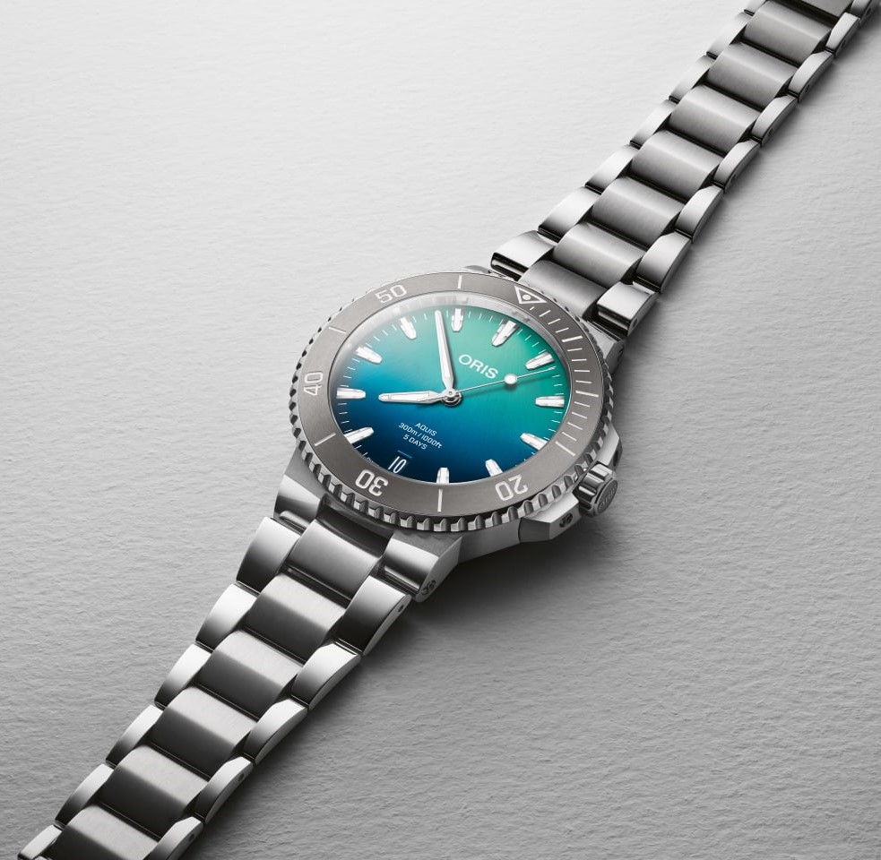 Oris Aquis Date Great Barrier Reef Limited Edition IV 01 400 7790 4185-Set jsou pánské automatické hodinky na ocelovém náramku v kombinaci brusu a lesku s překlápěcí sponou. Jedná se o limitovanou edici v počtu 2000 kusů pro celý svět věnovanou Velkému Bariérovému útesu v Austrálii na podporu nadace Reef Restoration Foundation. Jsou to již čtvrté hodinky z limitované série Great Barrier Reef. Tyto hodinky jsou součásí dlouhodobého závazku značky Oris vůči australskému Velkému Bariérovému útesu, největšímu útesovému systému na světě. Při přípravě edic z let 2010 a 2016 spolupracoval Oris s australskou organizací AMCS (Australian Marine Conservation Society), což je hlavní australská charitativní organizace na ochranu oceánů. AMCS stojí v čele projektů, vládních iniciativ a nových zákonů na ochranu jedinečných mořských ekosystémů. V roce 2019 Oris ve spolupráci s nadací Reef Restoration Foundation uvedl na trh limitovanou edici Great Barrier Reef III. Tato nezisková organizace se sídlem v Queenslandu vyvinula systémy korálových stromů pro obnovu útesů postižených znečištěním a změnou klimatu, což jsou kritické problémy ovlivňující citlivé druhy korálů na útesech. Nadace Reef Restoration Foundation proti tomu působí tak, že pěstuje odolnější druhy korálů, aby znovu vytvořila ekosystémy, které jsou pak schopny podporovat i citlivější druhy korálů.