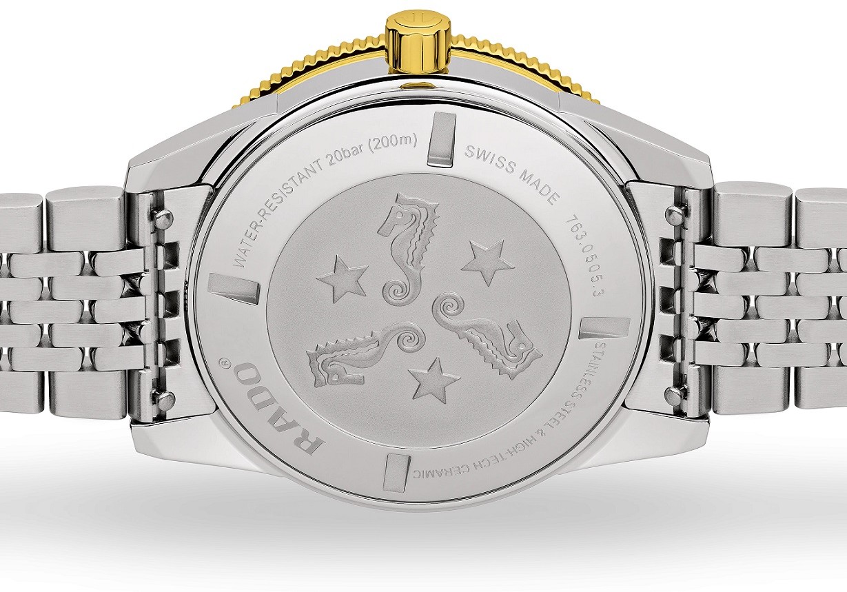 Rado Captain Cook Automatic R32138153 jsou pánské potápěčské hodinky v bicolor provedení. Středové dílky kovového náramku jsou spolu s lunetou a korunkou opatřeny PVD úpravou ve zlaté barvě. Náramek ve stylu „beads of rice“ získal své jméno kvůli středovým dílkům připomínající zrnka rýže. Pouzdro z leštěné nerezové oceli má průměr 42 milimetrů a jednosměrně otočnou lunetu s černou keramickou vložkou z materiálu High-Tech Ceramic. Černý číselník s datumovkou na pozici 3. hodiny je chráněn vypouklým safírovým sklem s oboustrannou antireflexní vrstvou. Aplikované hodinové indexy jsou stejně jako ručky pokryty luminiscenčním nátěrem Super-LumiNova®, který po nasvícení garantuje perfektní čitelnost za zhoršených světelných podmínek.Pohon hodinek zajišťuje mechanický strojek Rado R763 (03.763.835) s automatickým nátahem a rezervou chodu 80 hodin. Tento strojek s funkcí hackingu je možné v případě potřeby natahovat i ručně. Díky použití antimagnetického vlásku setrvačky Nivachron™ z titanové slitiny je tento kalibr vysoce odolný vůči vlivům magnetického pole. Pro dosažení co nejvyšší možné přesnosti je stroj testován v pěti pozicích. Hodinky disponují šroubovací korunkou a vysokou vodotěsností 30 ATM, jsou tedy vhodné pro hlubinné potápění. Systém EasyClip umožňuje snadnou a rychlou výměnu náramku.