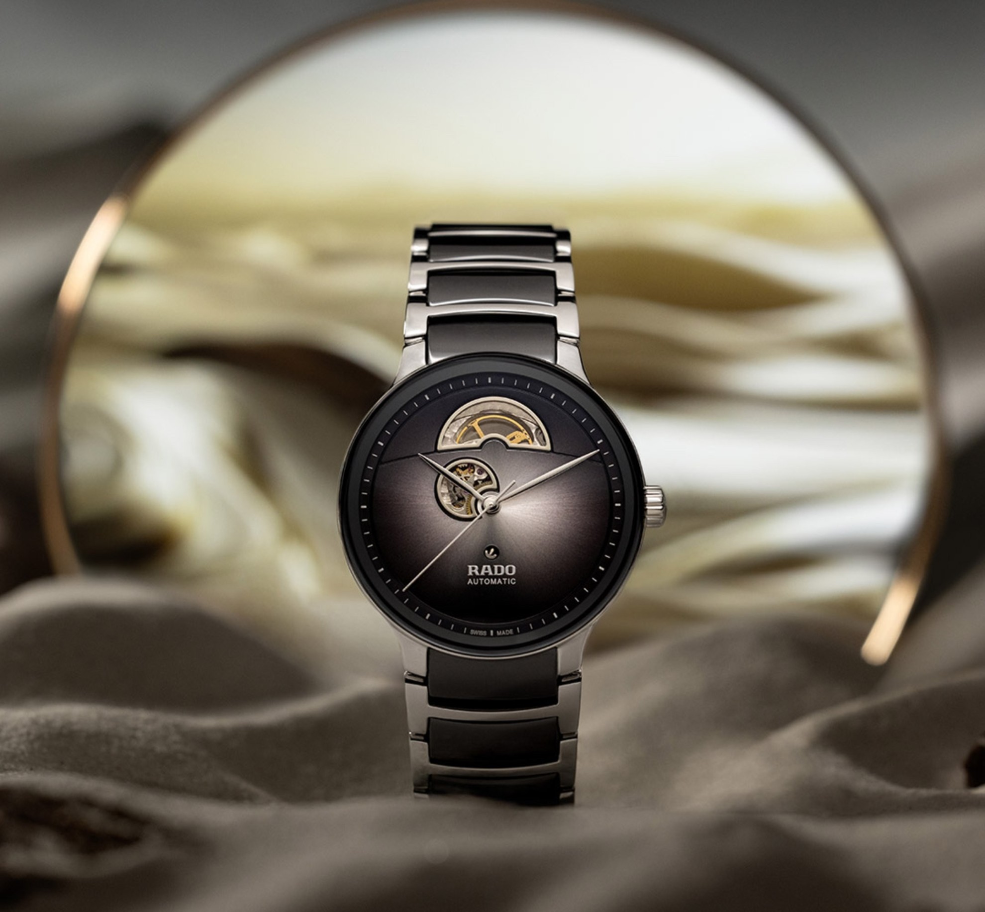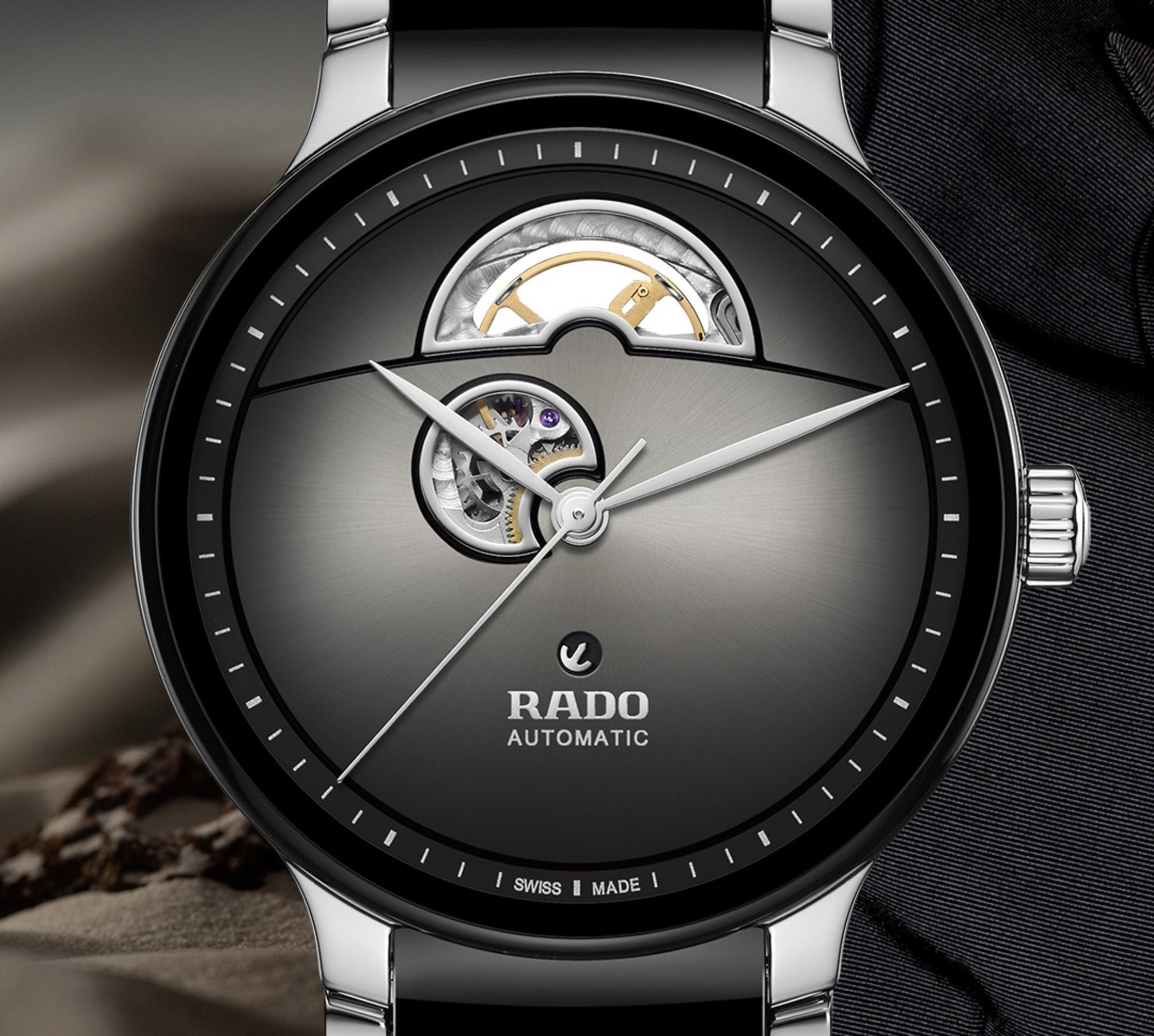 Rado Centrix Automatic Open Heart R30012152 jsou automatické unisex hodinky elegantního stylu s nerezovým pouzdrem o průměru 39,5 milimetru. Náramek tvoří kombinace keramického materiálu High-Tech Ceramic a oceli. Šedý gradientní číselník s efektem slunečního brusu nabízí díky komplikaci open heart pohled do samotného srdce mechanického stroje. Číselník chrání tzv. „edge to edge“ safírové sklíčko s oboustrannou antireflexní vrstvou a metalizovaným okrajem, které sahá až k úplnému okraji pouzdra. Průhledné dýnko umožňuje pohled na automatický kalibr R764 (03.734.431), který je dekorovaný perláží a ženevskými pruhy. Tento mechanický strojek s automatickým nátahem a rezervou chodu 80 hodin disponuje funkcí hackingu (zastavení vteřinové ručky při vytažení korunky do krajní polohy) a je možné ho v případě potřeby natahovat i ručně. Díky použití antimagnetického vlásku setrvačky Nivachron™ z titanové slitiny je tento kalibr vysoce odolný vůči vlivům magnetického pole. Pro dosažení co nejvyšší možné přesnosti je stroj testován v pěti pozicích. Hodinky disponují vodotěsností 5 ATM a jsou tedy odolné proti dešti a při sprchování.