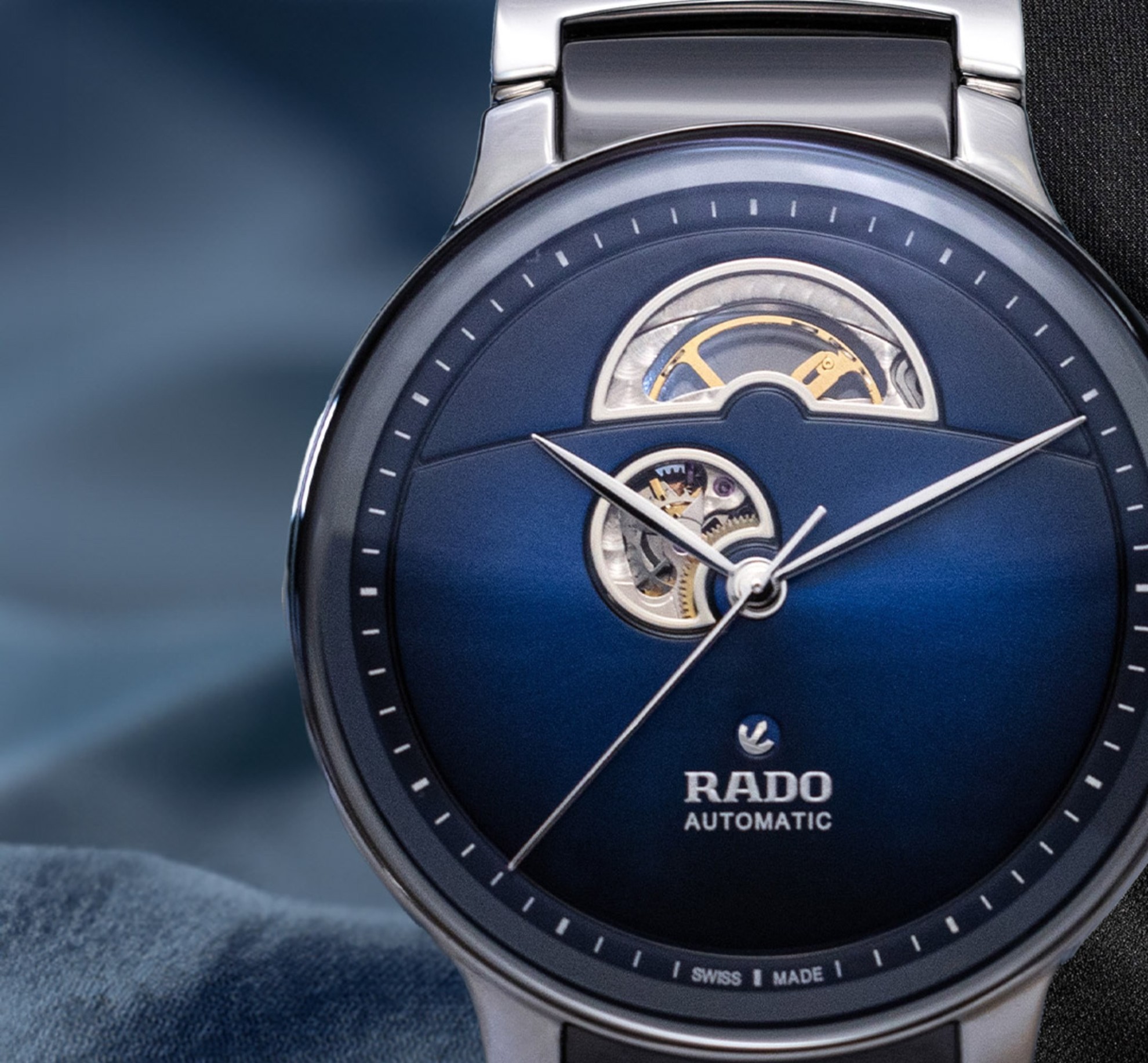 Rado Centrix Automatic Open Heart R30012202 jsou automatické unisex hodinky elegantního stylu s nerezovým pouzdrem o průměru 39,5 milimetru. Náramek tvoří kombinace keramického materiálu High-Tech Ceramic a oceli. Modrý gradientní číselník s efektem slunečního brusu nabízí díky komplikaci open heart pohled do samotného srdce mechanického stroje. Číselník chrání tzv. „edge to edge“ safírové sklíčko s oboustrannou antireflexní vrstvou a metalizovaným okrajem, které sahá až k úplnému okraji pouzdra. Průhledné dýnko umožňuje pohled na automatický kalibr R764 (03.734.431), který je dekorovaný perláží a ženevskými pruhy. Tento mechanický strojek s automatickým nátahem a rezervou chodu 80 hodin disponuje funkcí hackingu (zastavení vteřinové ručky při vytažení korunky do krajní polohy) a je možné ho v případě potřeby natahovat i ručně. Díky použití antimagnetického vlásku setrvačky Nivachron™ z titanové slitiny je tento kalibr vysoce odolný vůči vlivům magnetického pole. Pro dosažení co nejvyšší možné přesnosti je stroj testován v pěti pozicích. Hodinky disponují vodotěsností 5 ATM a jsou tedy odolné proti dešti a při sprchování.