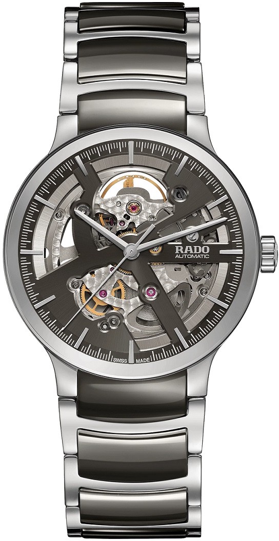 Rado Centrix R30179114 jsou automatické unisex hodinky elegantního stylu s leštěným ocelovým pouzdrem o průměru 38 milimetrů. Náramek tvoří kombinace keramického materiálu Plasma High-Tech Ceramic a oceli s titanovou motýlkovou sponou. Antracitový skeletonový číselník je chráněn tzv. „edge to edge“ safírovým sklem s metalizovaným rámečkem, které sahá až k úplnému okraji pouzdra. Spolu se safírovým průhledným dýnkem nabízí pohled na mechanický strojek s automatickým nátahem R734 (03.734.431), který je dekorovaný perláží a ženevskými pruhy. Tento strojek s rezervou chodu 80 hodin disponuje funkcí hackingu (zastavení vteřinové ručky při vytažení korunky do krajní polohy) a je možné ho v případě potřeby natahovat i ručně. Díky použití antimagnetického vlásku setrvačky Nivachron™ z titanové slitiny je kalibr vysoce odolný vůči vlivům magnetického pole. Pro dosažení co nejvyšší možné přesnosti je stroj testován v pěti pozicích. Hodinky disponují vodotěsností 3 ATM a jsou tedy odolné proti vlhkosti, dešti a při mytí rukou.