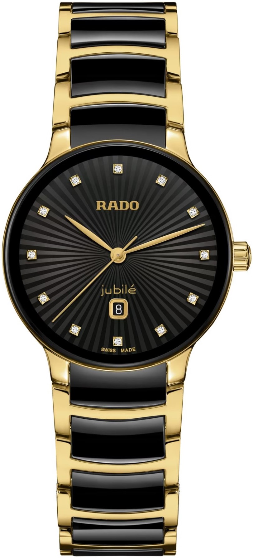 Rado Centrix Diamonds R30025742 jsou dámské bateriové hodinky elegantního stylu s ocelovým pouzdrem o průměru 30,5 milimetru. Náramek tvoří kombinace materiálu High-Tech Ceramic a oceli. Pouzdro s korunkou a ocelové části náramku jsou ošetřeny PVD úpravou ve zlaté barvě. Černý fazetovaný číselník s datumovkou na šesté hodině zdobený 12 diamanty je chráněn tzv. „edge to edge“ safírovým sklem s metalizovaným rámečkem, které sahá až k úplnému okraji pouzdra. Pohon hodinek zajištuje švýcarský quartzový strojek. Hodinky disponují vodotěsností 5 ATM a jsou tedy odolné proti dešti a při sprchování.