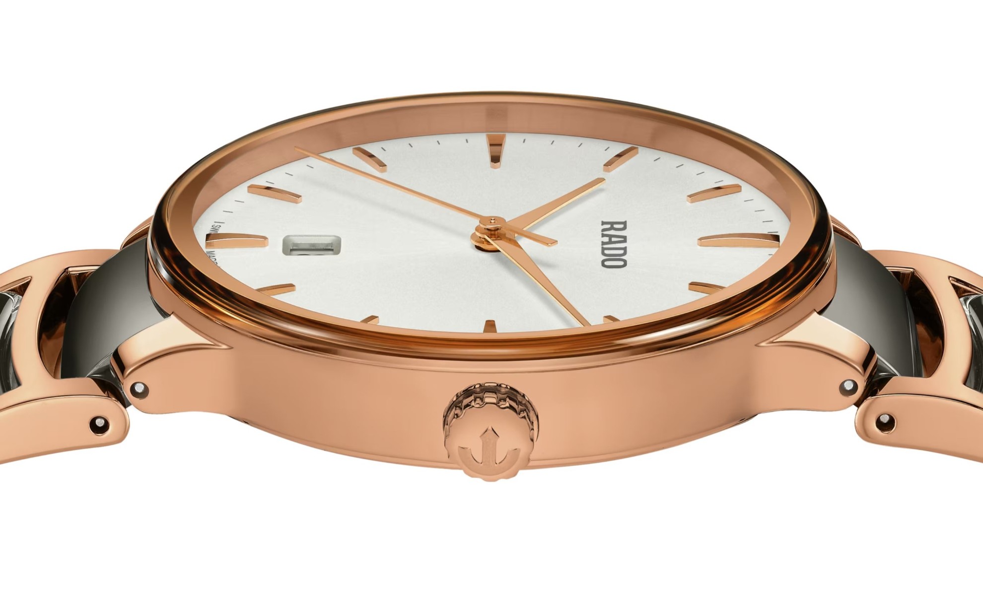 Rado Centrix R30023012 jsou bateriové unisex hodinky elegantního stylu s ocelovým pouzdrem o průměru 39,5 milimetru. Náramek tvoří kombinace materiálu Plasma High-Tech Ceramic a oceli. Pouzdro s korunkou a ocelové části náramku jsou ošetřeny PVD úpravou v barvě růžového zlata. Bílý číselník s datumovkou na šesté hodině je chráněn tzv. „edge to edge“ safírovým sklem s metalizovaným rámečkem, které sahá až k úplnému okraji pouzdra. Pohon hodinek zajištuje švýcarský quartzový strojek. Hodinky disponují vodotěsností 5 ATM a jsou tedy odolné proti dešti a při sprchování.