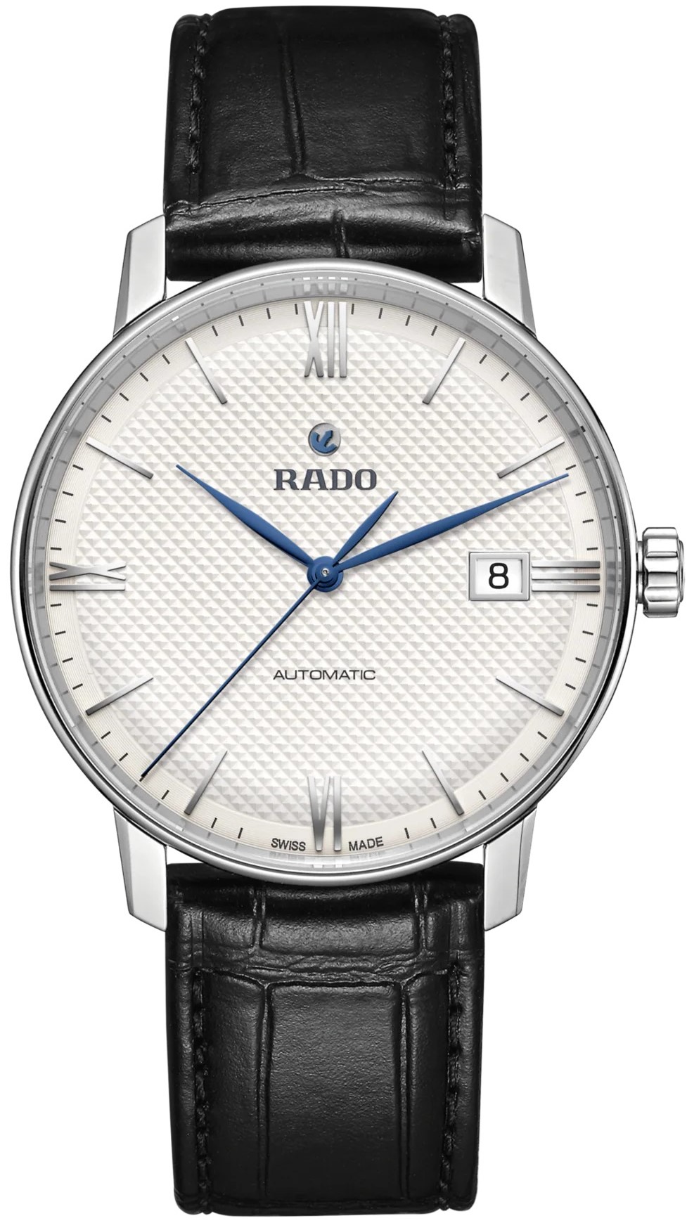 Rado Coupole Classic Automatic R22860075 jsou pánské elegantní automatické hodinky na černém koženém řemínku s průměrem pouzdra 37,7 milimetru. Bílý číselník zdobený giloší s modrými ručkami a datumovkou na třetí hodině je chráněn safírovým sklíčkem s oboustrannou antireflexní vrstvou. Průhledné dýnko umožňuje pohled na mechanický strojek dekorovaný ženevskými pruhy. Tento mechanický strojek R763 (03.763.532) s automatickým nátahem a rezervou chodu 80 hodin disponuje funkcí hackingu (zastavení vteřinové ručky při vytažení korunky do krajní polohy) a je možné ho v případě potřeby natahovat i ručně. Díky použití antimagnetického vlásku setrvačky Nivachron™ z titanové slitiny je vysoce odolný vůči vlivům magnetického pole. Pro dosažení co nejvyšší možné přesnosti je stroj testován v pěti pozicích. S vodotěsností 5 ATM jsou hodinky odolné proti dešti a při sprchování.