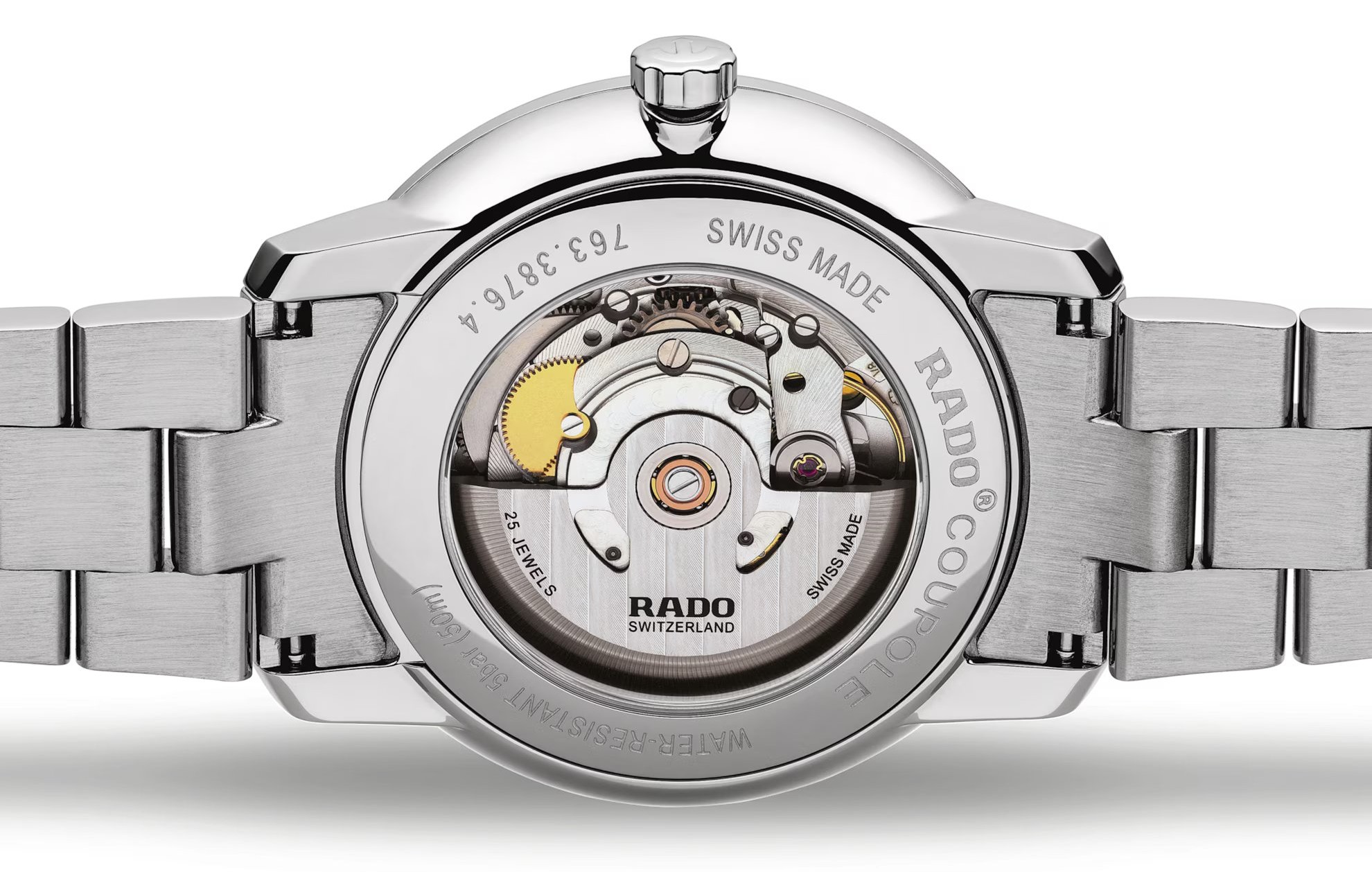Rado Coupole Classic Automatic R22876013 jsou pánské automatické hodinky v klasickém stylu na ocelovém náramku s motýlkovou sponou a průměrem pouzdra 41 milimetrů. Bílý číselník zdobený giloší s modrými ručkami a datumovkou na třetí hodině je chráněn safírovým sklíčkem s oboustrannou antireflexní vrstvou. Průhledné dýnko umožňuje pohled na mechanický strojek dekorovaný ženevskými pruhy. Tento mechanický strojek R763 (03.763.532) s automatickým nátahem a rezervou chodu 80 hodin disponuje funkcí hackingu (zastavení vteřinové ručky při vytažení korunky do krajní polohy) a je možné ho v případě potřeby natahovat i ručně. Díky použití antimagnetického vlásku setrvačky Nivachron™ z titanové slitiny je vysoce odolný vůči vlivům magnetického pole. Pro dosažení co nejvyšší možné přesnosti je stroj testován v pěti pozicích. S vodotěsností 5 ATM jsou hodinky odolné proti dešti a při sprchování.