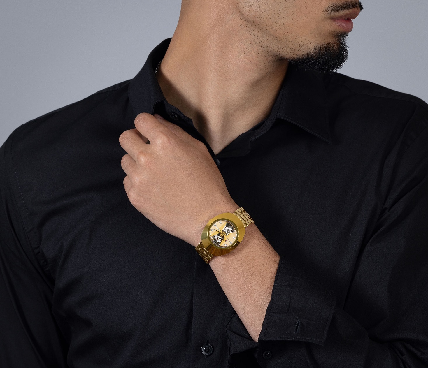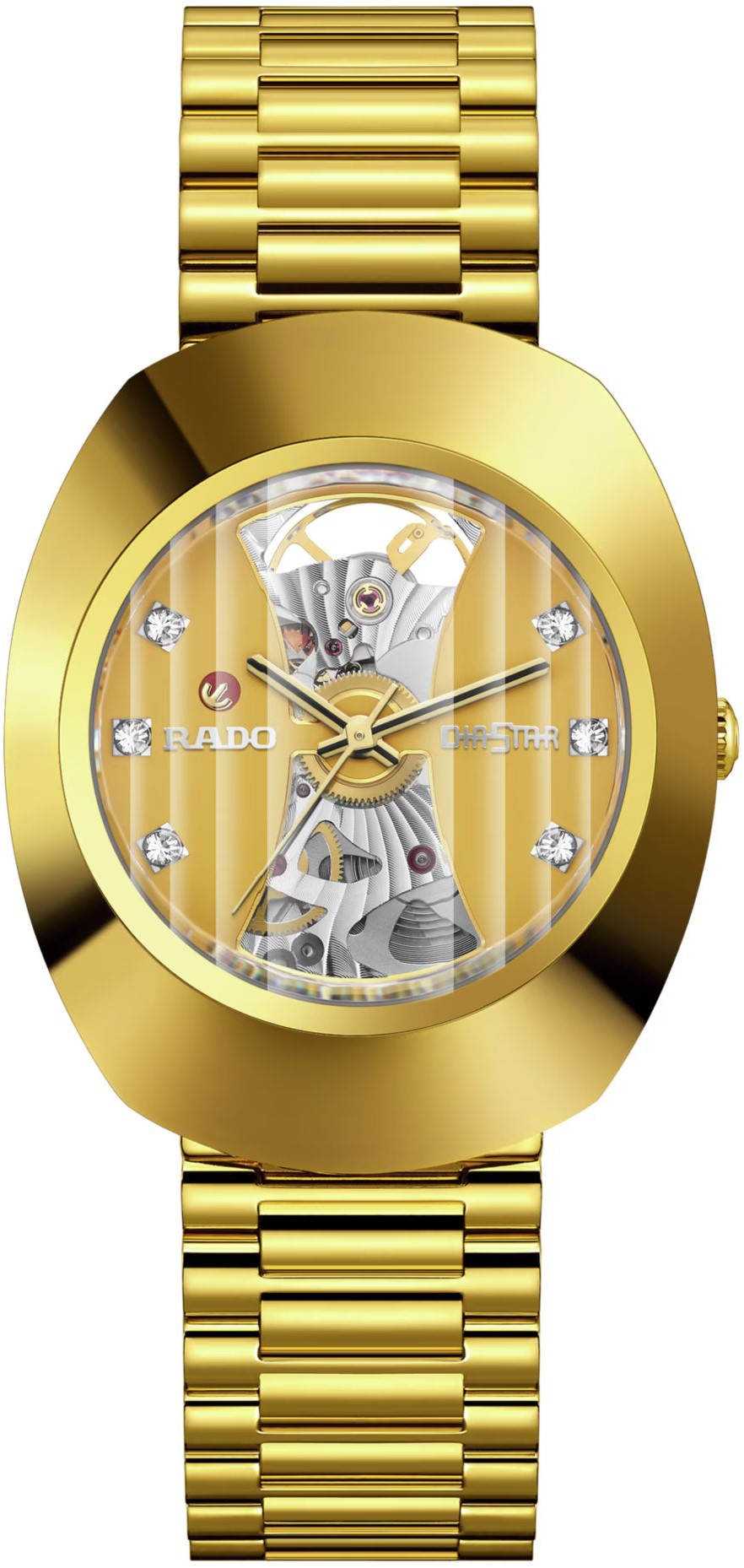 Rado DiaStar Original Open Heart R12064263 jsou automatické unisex hodinky v klasickém stylu s ocelovým náramkem s povrchovou PVD úpravou ve zlaté barvě a překlápěcí sponou. Pouzdro o průměru 35 milimetrů je vyrobeno z nerezové oceli a opatřeno PVD úpravou v barvě jako náramek. Dvousměrně kartáčovaný zlatý číselník zdobený 6 zirkony je chráněn fazetovaným safírovým sklem a spolu s průhledným zadním dýnkem nabízí pohled na mechanický strojek R764 (03.764.432) s automatickým nátahem a rezervou chodu 80 hodin. Tento strojek disponuje funkcí hackingu (zastavení vteřinové ručky při vytažení korunky do krajní polohy) a je možné ho v případě potřeby natahovat i ručně. Díky použití antimagnetického vlásku setrvačky Nivachron™ z titanové slitiny je tento kalibr vysoce odolný vůči vlivům magnetického pole. Pro dosažení co nejvyšší možné přesnosti je stroj testován v pěti pozicích. Vodotěsnost hodinek činí 3 ATM a jsou tedy odolné při dešti a mytí rukou.