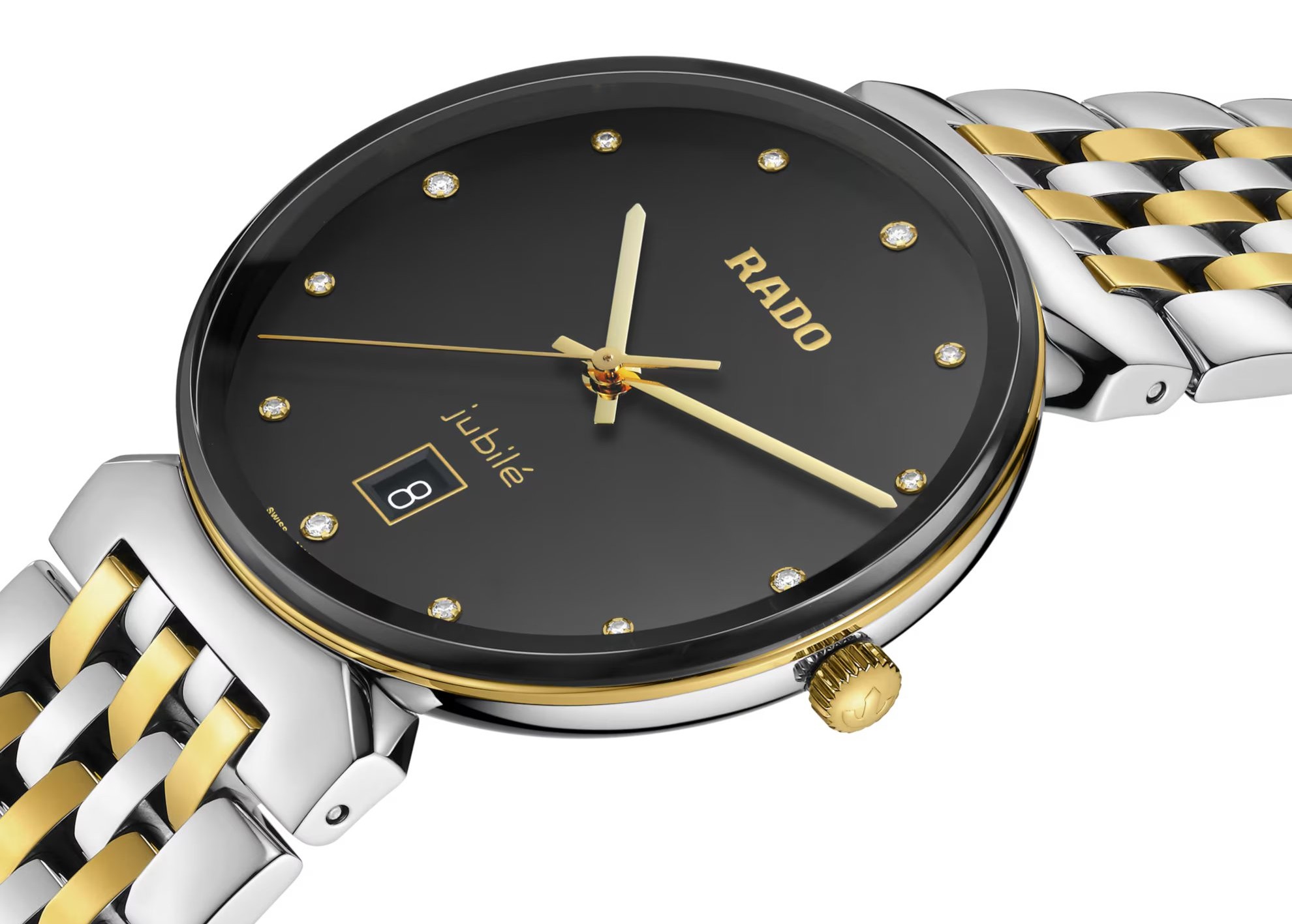 Rado Florence Classic Diamonds R48912743 jsou bateriové unisex hodinky klasického stylu s ocelovým pouzdrem o průměru 38 milimetrů a ocelovým náramkem s motýlkovou sponou. Části náramku a pouzdra jsou opatřeny povrchovou PVD úpravou v barvě žlutého zlata. Černý číselník s datumovkou zdobený 12 diamanty je chráněn tzv. „edge to edge“ safírovým sklem s metalizovaným rámečkem, které sahá až k úplnému okraji pouzdra. Pohon hodinek zajištuje švýcarský quartzový strojek. S vodotěsností 5 ATM jsou hodinky odolné proti dešti a při sprchování.