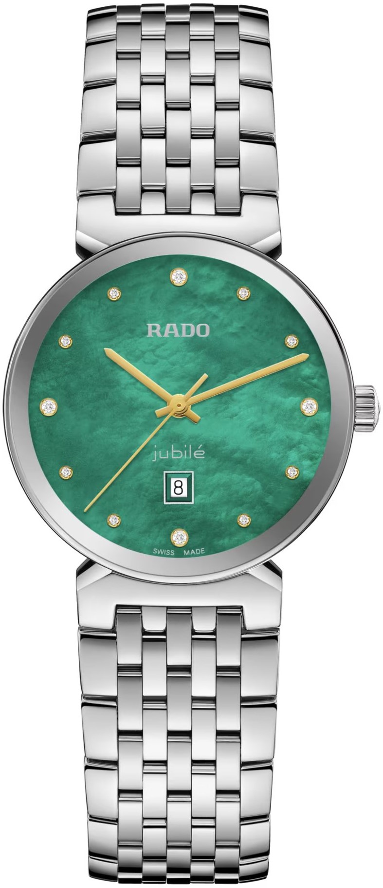 Rado Florence Classic Diamonds R48913903 jsou dámské bateriové hodinky klasického stylu s ocelovým pouzdrem o průměru 30 milimetrů a ocelovým náramkem s motýlkovou sponou. Zelený perleťový číselník s datumovkou zdobený 12 diamanty je chráněn tzv. „edge to edge“ safírovým sklem s metalizovaným rámečkem, které sahá až k úplnému okraji pouzdra. Pohon hodinek zajištuje švýcarský quartzový strojek. S vodotěsností 5 ATM jsou hodinky odolné proti dešti a při sprchování.