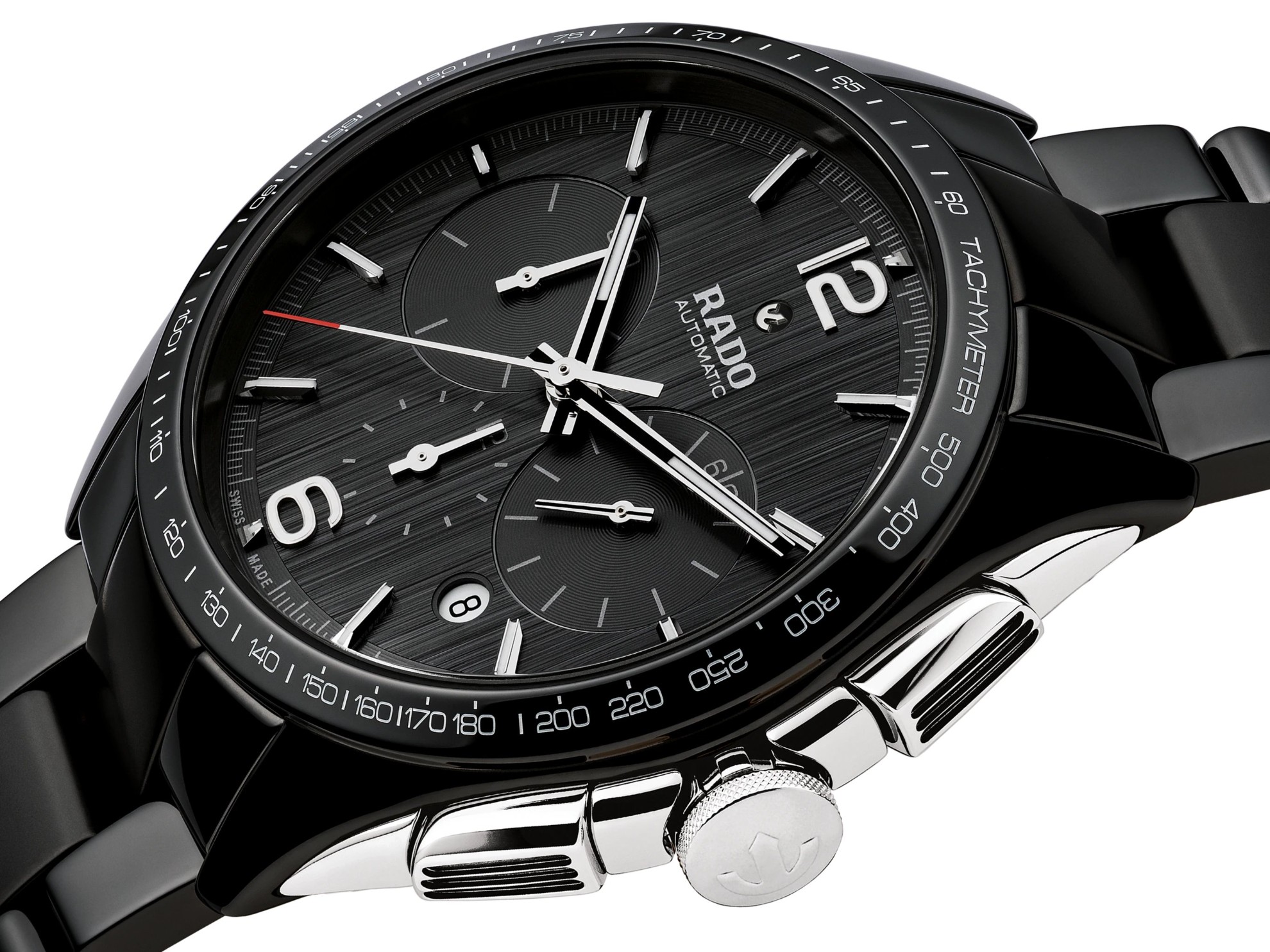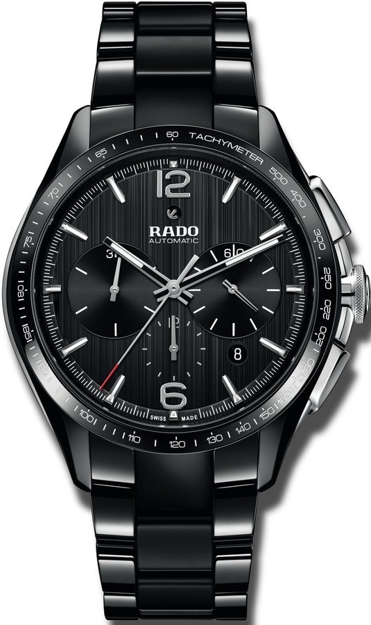 Rado HyperChrome Automatic Chronograph R32121152 jsou pánské sportovní hodinky vyrobené ze speciálního materiálu High-Tech Ceramic, který je vysoce odolný vůči poškrábání. Pouzdro o průměru 45 milimetrů disponuje tachymetrickou stupnicí a jeho boční strany a korunka jsou z nerezové oceli. Černý vertikálně broušený číselník s datumovkou a stopkami je chráněn safírovým sklem s oboustrannou antireflexní vrstvou. Průhledné dýnko nabízí pohled na mechanický strojek R650 03.650.022 s automatickým nátahem, který disponuje rezervou chodu 47 hodin. Tento strojek s funkcí hackingu (zastavení vteřinové ručky při vytažení korunky do krajní polohy) je možné v případě potřeby natahovat i ručně. Díky použití antimagnetického vlásku setrvačky Nivachron™ z titanové slitiny je kalibr vysoce odolný vůči vlivům magnetického pole. Pro dosažení co nejvyšší možné přesnosti je stroj testován v pěti pozicích. S vodotěsností 10 ATM jsou hodinky vhodnou volbou pro koupání a šnorchlování.