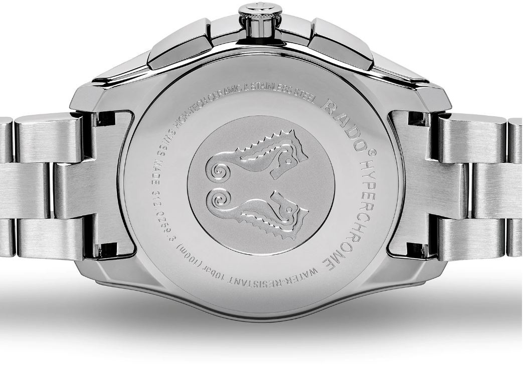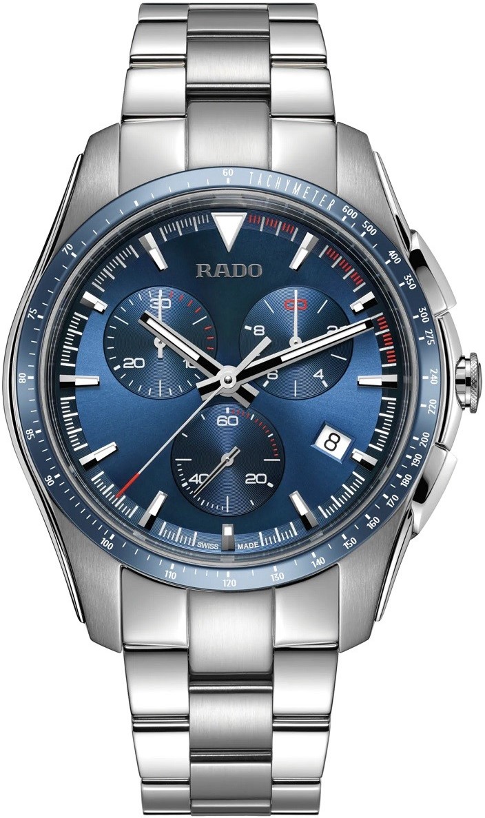 Rado HyperChrome Chronograph R32259203 jsou pánské sportovní hodinky s ocelovým náramkem. Pouzdro z leštěné nerezové oceli má průměr 44,9 milimetru a lunetu s tachymetrickou stupnicí z materiálu High-Tech Ceramic, který je vysoce odolný vůči poškrábání. Modrý číselník s efektem slunečního brusu, stopkami a datumovkou na čtvrté hodině je chráněn safírovým sklem s oboustrannou antireflexní vrstvou pro minimalizování odlesků světla. Ručičky a indexy jsou potaženy luminiscenční vrstvou Super-LumiNova® pro lepší čitelnost i za zhoršených světelných podmínek. Chod hodinek zajišťuje švýcarský quartzový strojek. S vodotěsností 100 metrů jsou hodinky vhodnou volbou pro koupání a šnorchlování.