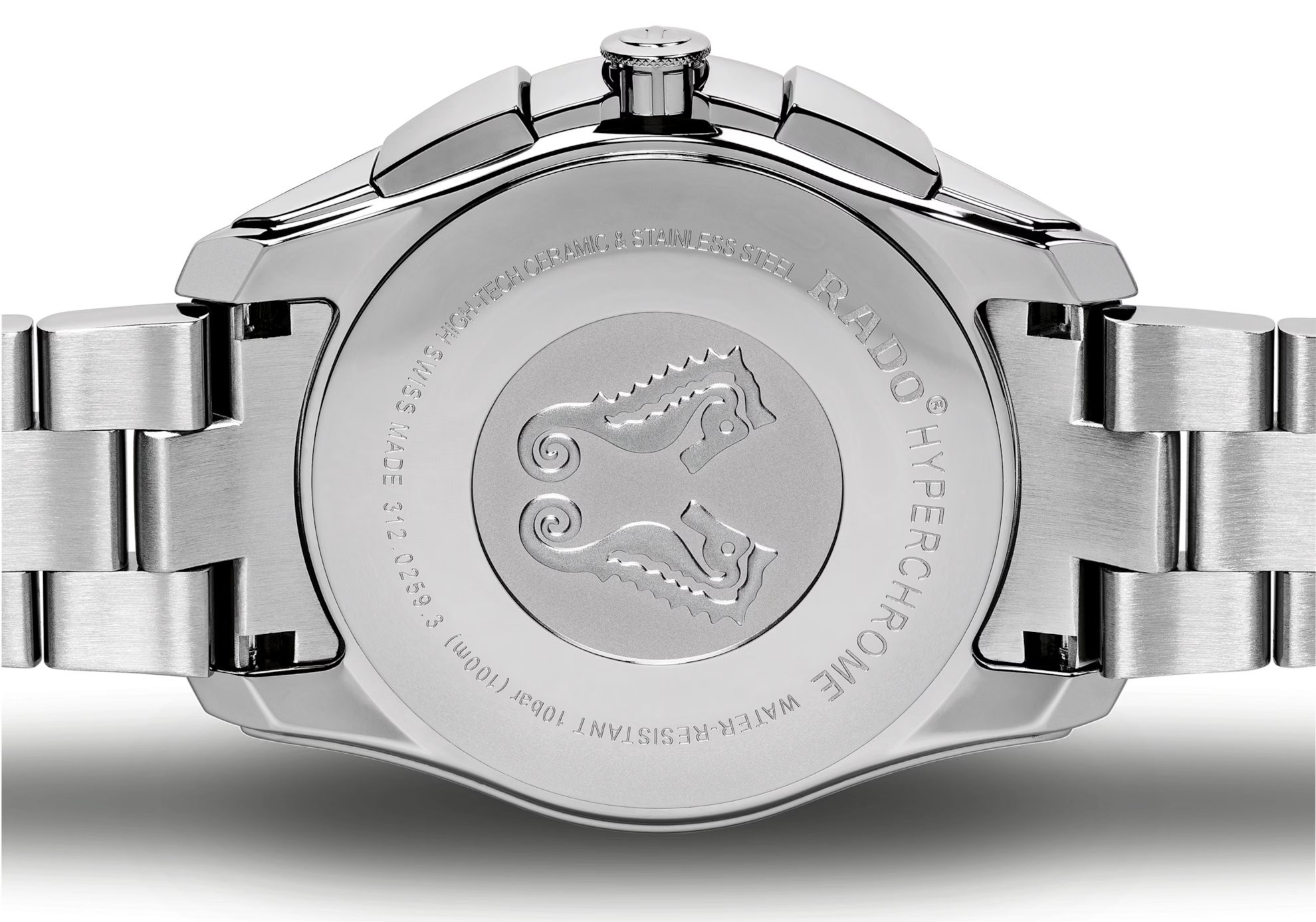 Rado HyperChrome Chronograph R32259313 jsou pánské sportovní hodinky s ocelovým náramkem. Pouzdro z leštěné nerezové oceli má průměr 44,9 milimetru a lunetu s tachymetrickou stupnicí z materiálu High-Tech Ceramic, který je vysoce odolný vůči poškrábání. Zelený číselník s efektem slunečního brusu, stopkami a datumovkou na čtvrté hodině je chráněn safírovým sklem s oboustrannou antireflexní vrstvou pro minimalizování odlesků světla. Ručičky a indexy jsou potaženy luminiscenční vrstvou Super-LumiNova® pro lepší čitelnost i za zhoršených světelných podmínek. Chod hodinek zajišťuje švýcarský quartzový strojek. S vodotěsností 100 metrů jsou hodinky vhodnou volbou pro koupání a šnorchlování.