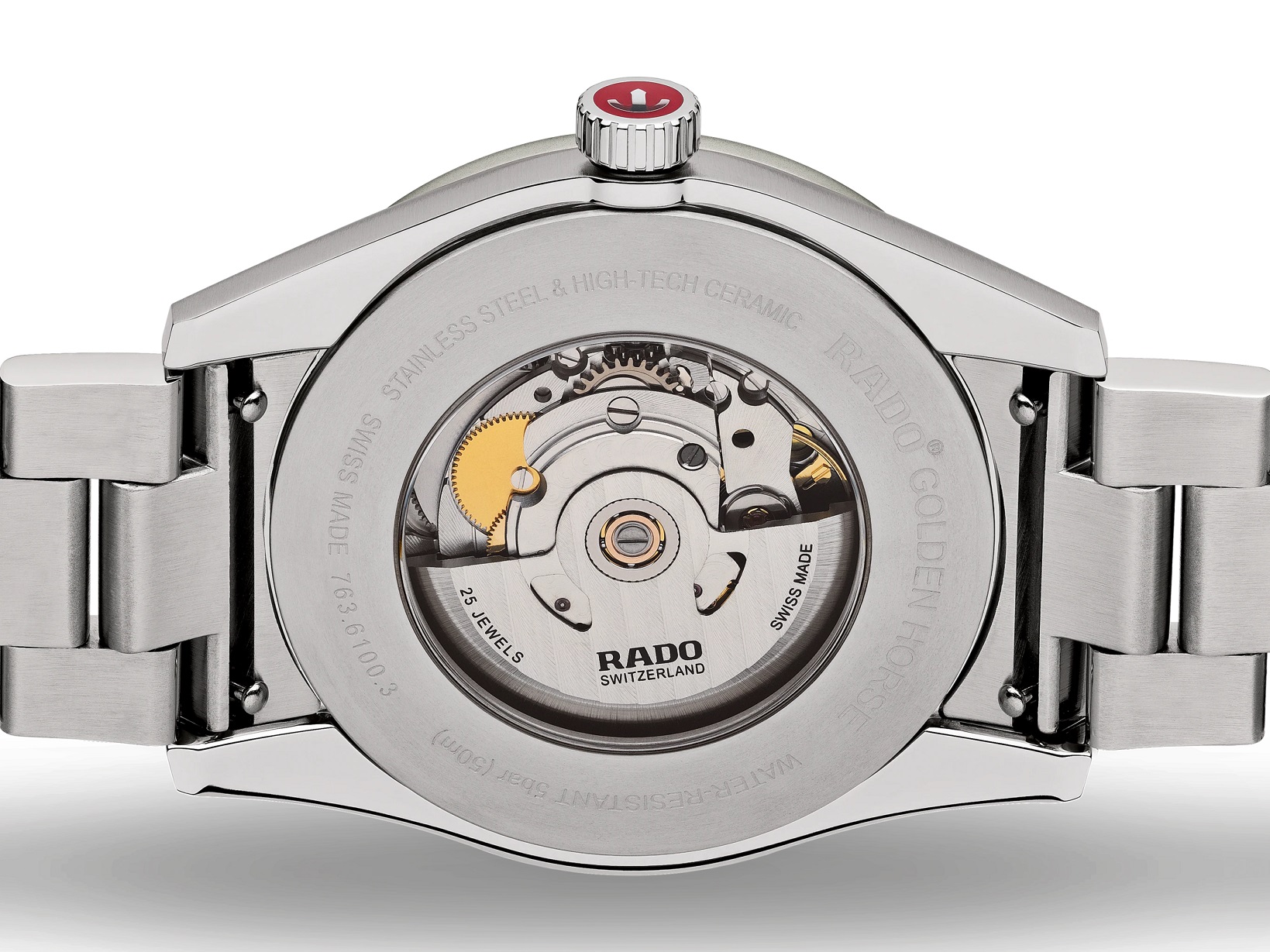 Rado HyperChrome Classic Automatic R33101314 jsou pánské klasické hodinky na ocelovém náramku. Pouzdro z leštěné nerezové oceli má průměr 42 milimetrů a je vybaveno lunetou z materiálu Plasma High-Tech Ceramic, který je vysoce odolný vůči poškrábání. Zelený číselník s efektem slunečního brusu a datumovkou na třetí hodině je chráněn safírovým sklem s oboustrannou antireflexní vrstvou. Vteřinová ručička je vybavenou vrstvou Super-LumiNova® pro lepší viditelnost za zhoršených světelných podmínek. Průhledné dýnko umožňuje pohled na mechanický strojek R763 (03.763.143) s automatickým nátahem dekorovaný ženevskými pruhy, který disponuje rezervou chodu 80 hodin. Tento strojek s funkcí hackingu (zastavení vteřinové ručky při vytažení korunky do krajní polohy) je možné v případě potřeby natahovat i ručně. Díky použití antimagnetického vlásku setrvačky Nivachron™ z titanové slitiny je kalibr vysoce odolný vůči vlivům magnetického pole. Pro dosažení co nejvyšší možné přesnosti je stroj testován v pěti pozicích. S vodotěsností 5 ATM jsou hodinky odolné proti dešti a při sprchování. Systém EasyClip umožňuje rychlou a snadnou výměnu řemínků.