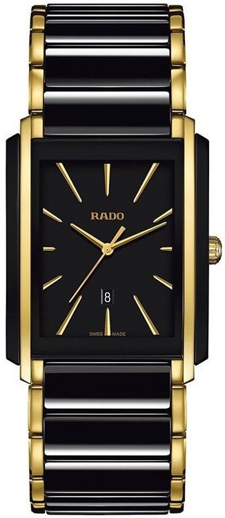 Rado Integral R20204162 jsou elegantní unisex hodinky s hranatým pouzdrem širokým 31 milimetrů. Materiál pouzdra i náramku tvoří kombinace vysoce odolného materiálu High-Tech Ceramic s leštěnou nerezovou ocelí opatřenou PVD úpravou zlaté barvy. Černý číselník s ukazatelem data na šesté hodině je chráněn safírovým sklíčkem. Pohon hodinek zajišťuje švýcarský quartzový strojek. S vodotěsností 5 ATM jsou hodinky odolné proti dešti a při sprchování.