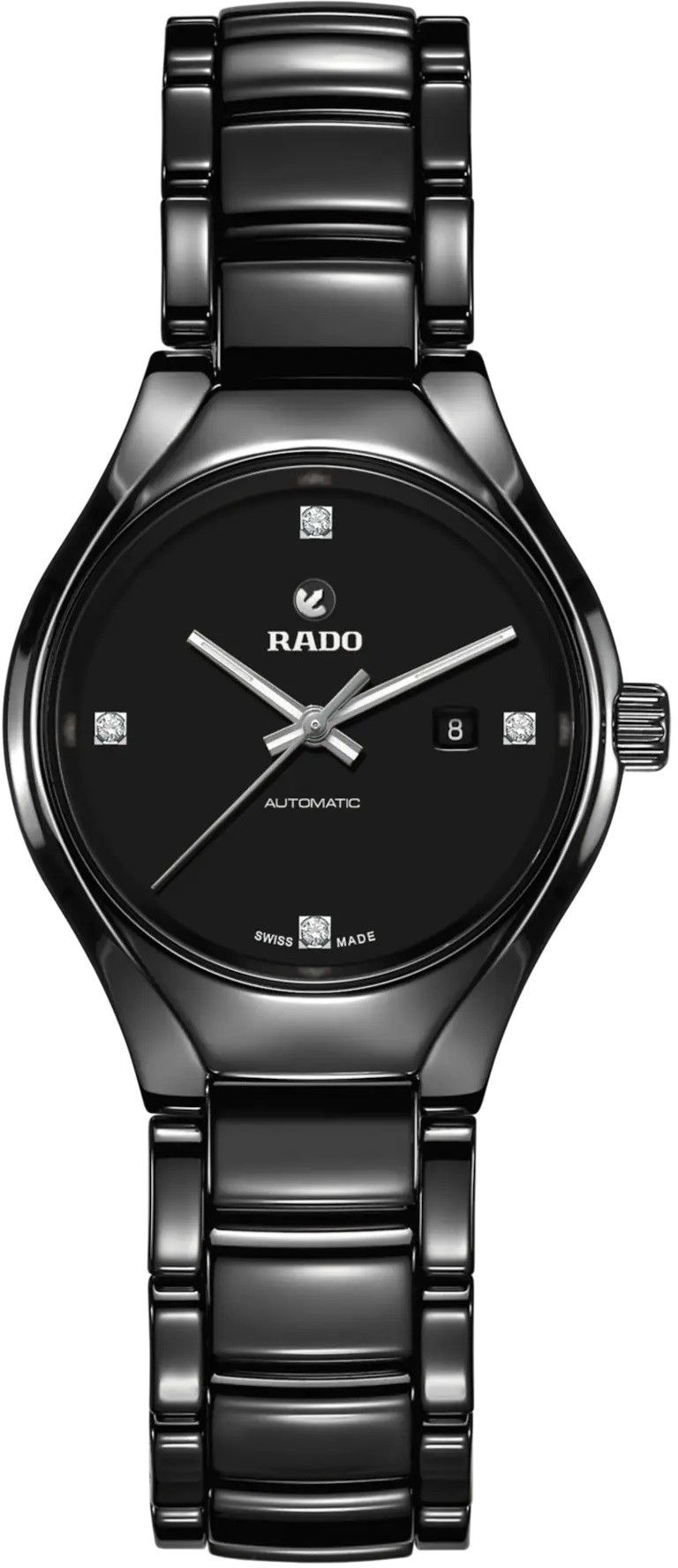 Rado True Automatic Diamonds R27242722 jsou dámské elegantní hodinky vyrobené ze speciálního materiálu High-Tech Ceramic. Díky tomuto materiálu jsou hodinky lehké, hypoalergenní a odolné vůči poškrábání. Pouzdro hodinek má průměr 30 milimetrů. Černý číselník s ukazatelem data na třetí hodině je chráněn safírovým sklem. Ručičky ve stříbrné barvě jsou potaženy vrstvou Super-LumiNova® pro lepší čitelnost za zhoršených světelných podmínek. Pohon hodinek zajišťuje mechanický strojek R561 (03.561.332) s automatickým nátahem a rezervou chodu 44 hodin. Tento strojek s funkcí zastavení vteřinové ručky při vytažení korunky do krajní polohy, pro kterou se vžilo označení hacking, je možné v případě potřeby natahovat i ručně. Díky použití antimagnetického vlásku setrvačky Nivachron™ z titanové slitiny, je tento kalibr vysoce odolný vůči vlivům magnetického pole. Pro dosažení co nejvyšší možné přesnosti je stroj testován v pěti pozicích. Hodinky disponují vodotěsností 5 ATM a jsou tedy odolné proti dešti a při sprchování.