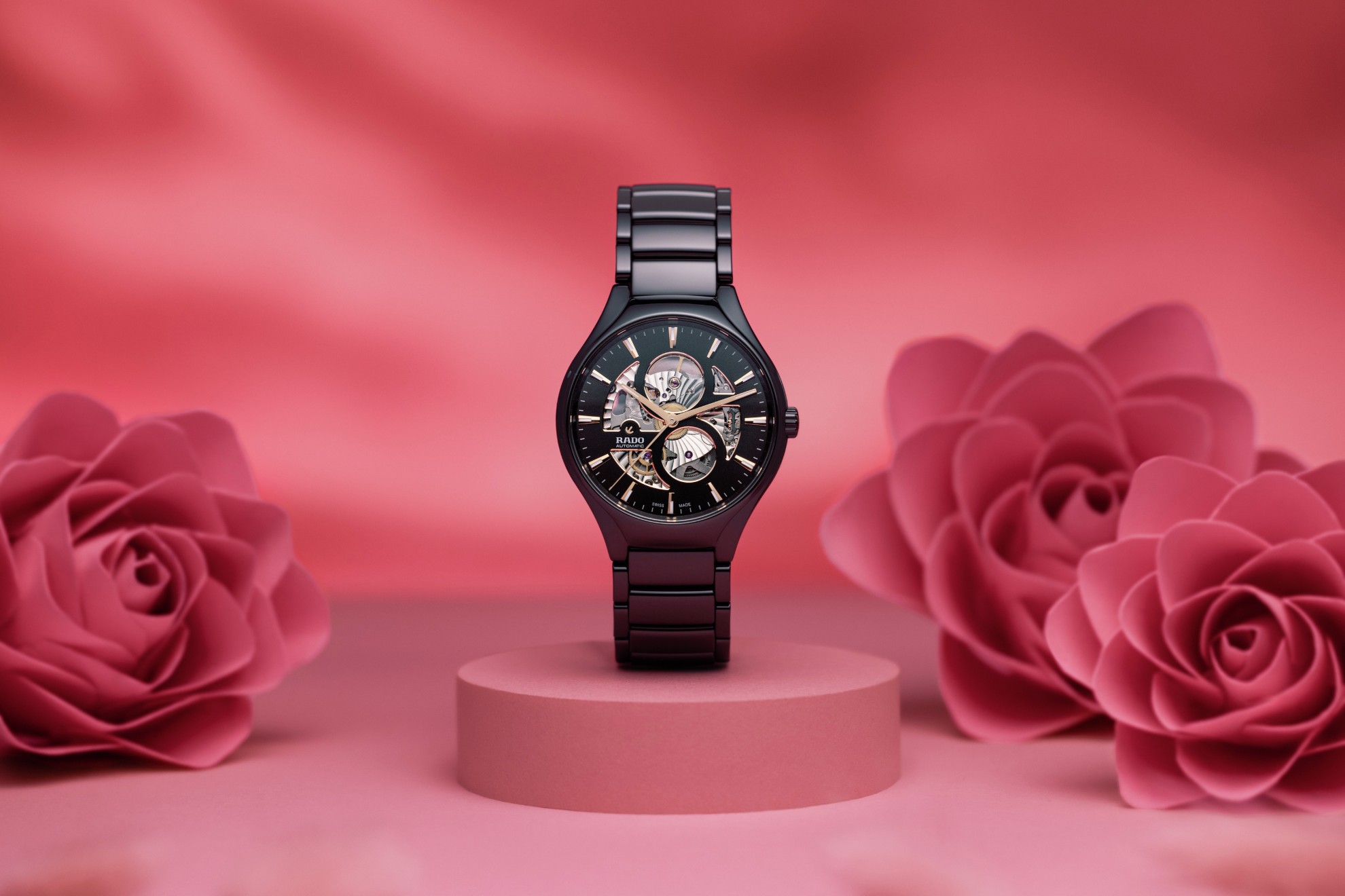 Rado True Automatic Open Heart R27107172 jsou elegantní unisex hodinky s pouzdrem o průměru 40 milimetrů a náramkem vyrobeným ze speciálního materiálu High-Tech Ceramic v černé barvě. Díky tomuto materiálu jsou hodinky lehké, hypoalergenní a odolné vůči poškrábání. Safírové sklo je ošetřeno antireflexní vrstvou z obou stran. Ručičky a aplikované indexy jsou pro lepší čitelnost za zhoršených světelných podmínek potaženy luminiscenční vrstvou Super-LumiNova®. Černý číselník spolu s průhledným dýnkem nabízí pohled na mechanický strojek R734 (03.734.532) s automatickým nátahem, který je dekorovaný perláží a ženevskými pruhy. Tento strojek s rezervou chodu 80 hodin disponuje funkcí hackingu (zastavení vteřinové ručky při vytažení korunky do krajní polohy) a je možné ho v případě potřeby natahovat i ručně. Díky použití antimagnetického vlásku setrvačky Nivachron™ z titanové slitiny je tento kalibr vysoce odolný vůči vlivům magnetického pole. Pro dosažení co nejvyšší možné přesnosti je stroj testován v pěti pozicích. Hodinky disponují vodotěsností 5 ATM a jsou tedy odolné proti dešti a při sprchování.