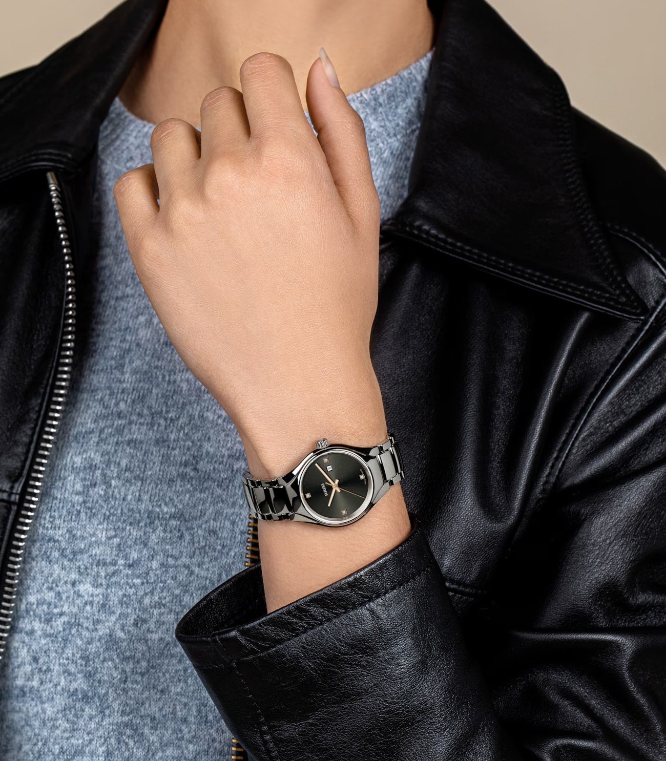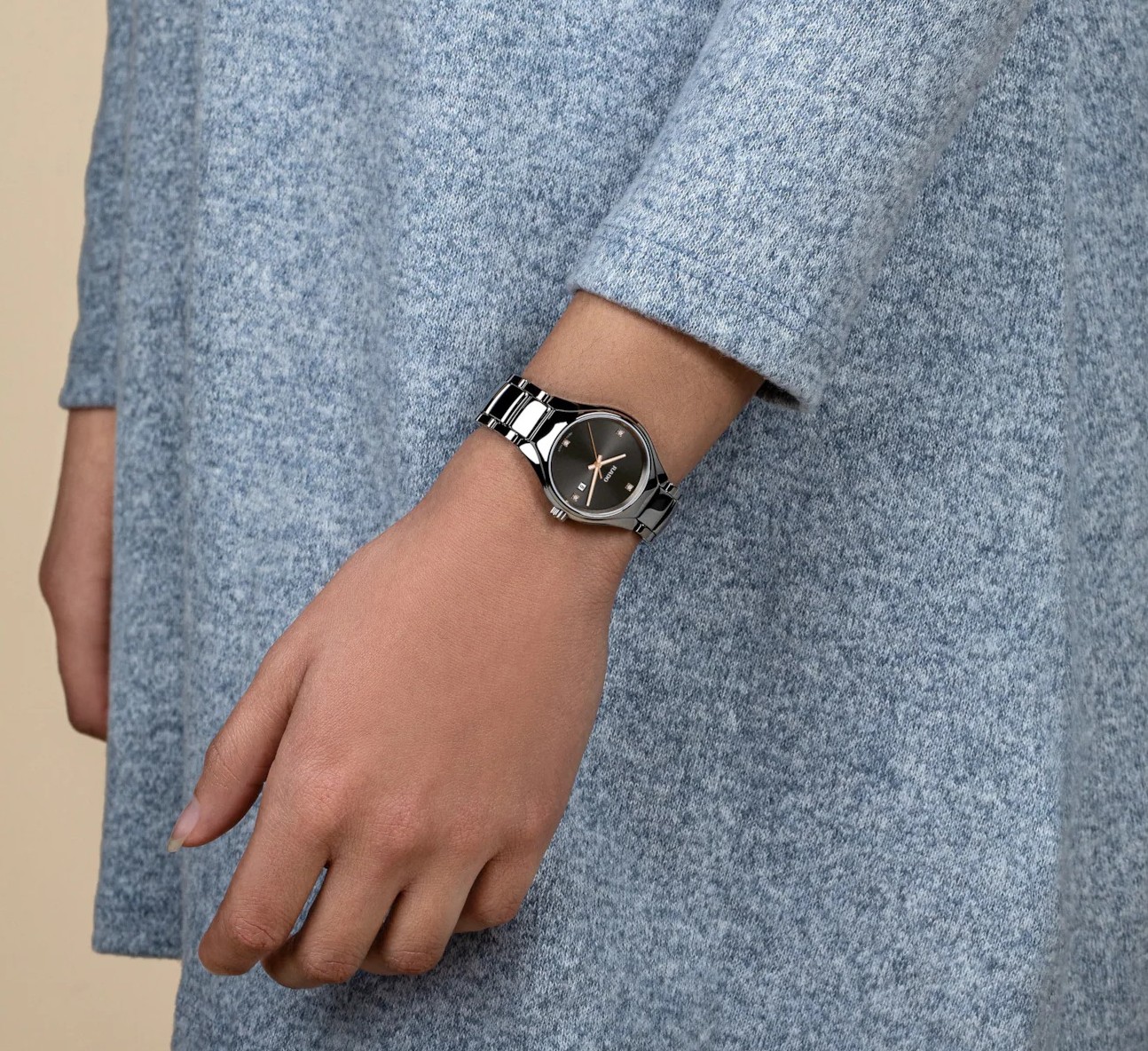 Rado True R27060712 jsou dámské elegantní hodinky vyrobené ze speciálního materiálu Plasma High-Tech Ceramic. Díky tomuto materiálu jsou hodinky lehké, hypoalergenní a odolné vůči poškrábání. Pouzdro hodinek má průměr 30 milimetrů. Šedý číselník s efektem slunečního brusu doplněný 4 diamanty a ukazatelem data je chráněn safírovým sklem s oboustrannou antireflexní vrstvou. Ručičky v barvě růžového zlata jsou potaženy vrstvou Super-LumiNova® pro lepší čitelnost za zhoršených světelných podmínek. Pohon hodinek zajišťuje švýcarský quartzový strojek. Hodinky disponují vodotěsností 5 ATM a jsou tedy odolné proti dešti a při sprchování.