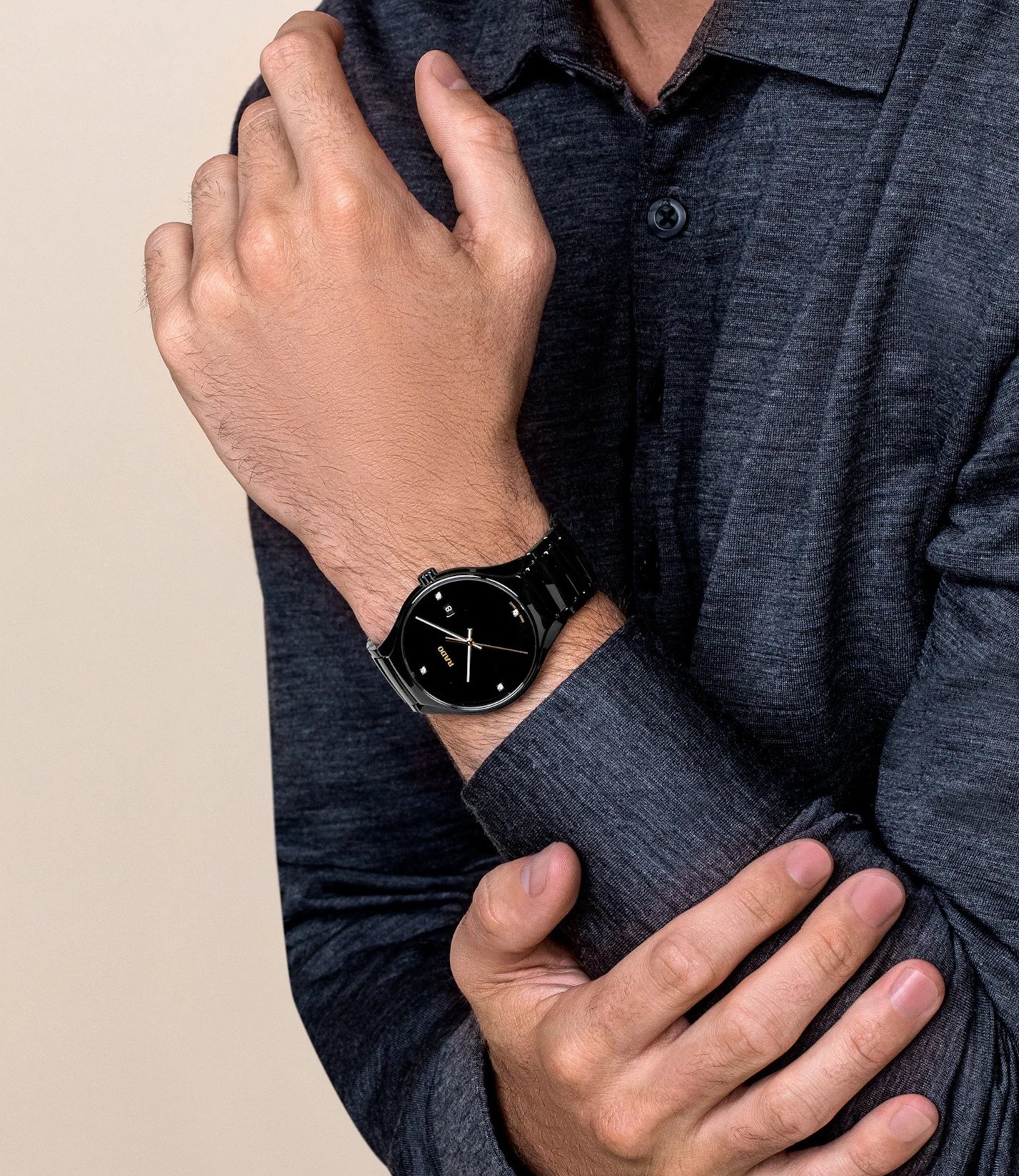 Rado True R27238712 jsou pánské elegantní hodinky vyrobené ze speciálního materiálu High-Tech Ceramic. Díky tomuto materiálu jsou hodinky lehké, hypoalergenní a odolné vůči poškrábání. Pouzdro hodinek má průměr 40 milimetrů. Černý číselník se 4 diamanty a ukazatelem data je chráněn safírovým sklem s oboustrannou antireflexní vrstvou. Ručičky jsou pro lepší čitelnost za zhoršených světelných podmínek potaženy luminiscenční vrstvou Super-LumiNova®. Pohon hodinek zajišťuje švýcarský quartzový strojek. Hodinky disponují vodotěsností 5 ATM a jsou tedy odolné proti dešti a při sprchování.