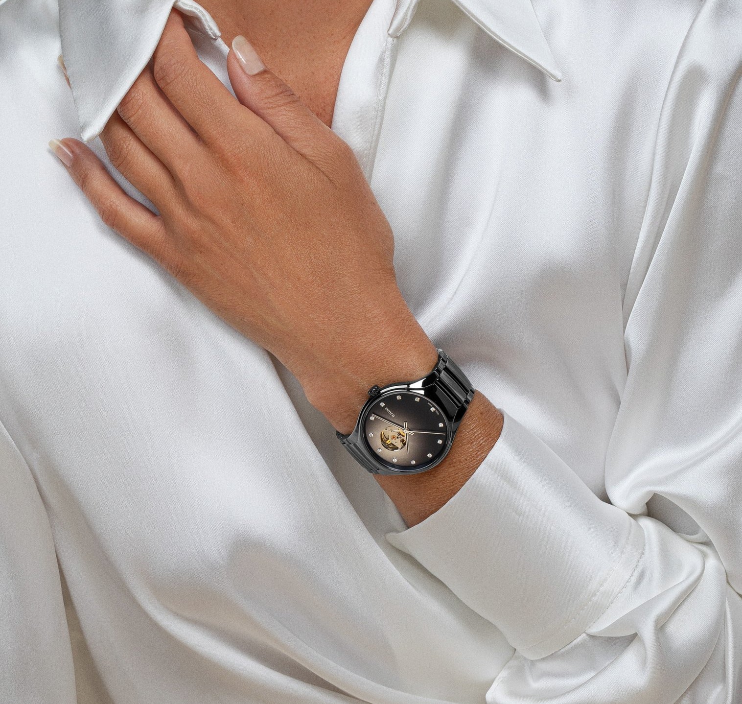 Rado True Secret Open Heart Diamonds R27107732 jsou elegantní unisex hodinky vyrobené ze speciálního materiálu High-Tech Ceramic, který je vysoce odolný vůči poškrábání. Pouzdro hodinek má průměr 40 milimetrů. Šedo-černý gradientní číselník zdobený 12 diamanty o hmotnosti 0,1200 ct je chráněn safírovým sklem s oboustrannou antireflexní vrstvou a spolu s průhledným dýnkem nabízí pohled na mechanický strojek R734 (03.734.331) s automatickým nátahem, který je dekorovaný perláží a ženevskými pruhy. Tento strojek s rezervou chodu 80 hodin disponuje funkcí hackingu (zastavení vteřinové ručky při vytažení korunky do krajní polohy) a je možné ho v případě potřeby natahovat i ručně. Díky použití antimagnetického vlásku setrvačky Nivachron™ z titanové slitiny je tento kalibr vysoce odolný vůči vlivům magnetického pole. Pro dosažení co nejvyšší možné přesnosti je stroj testován v pěti pozicích. Hodinky disponují vodotěsností 5 ATM a jsou tedy odolné proti dešti a při sprchování.