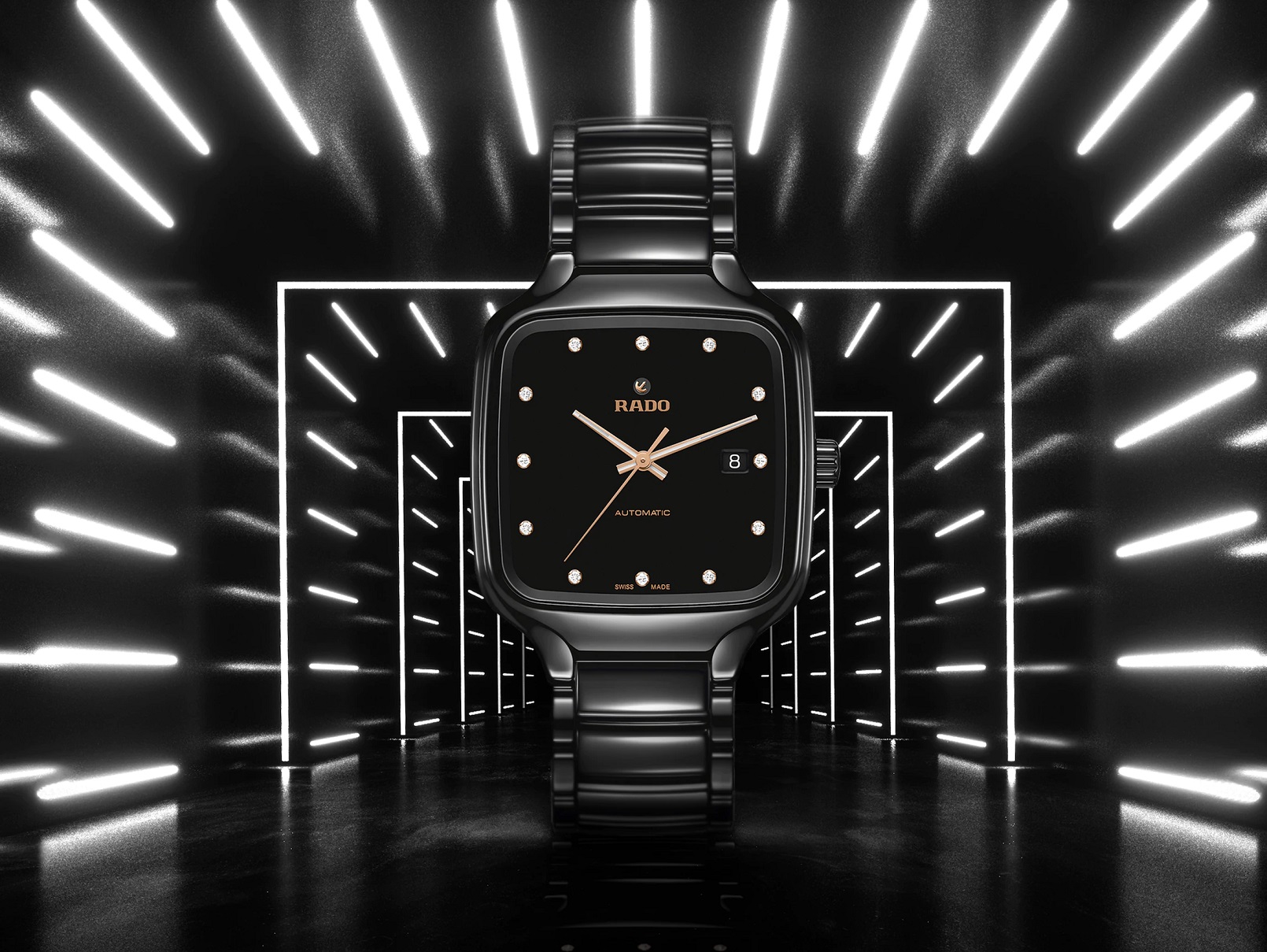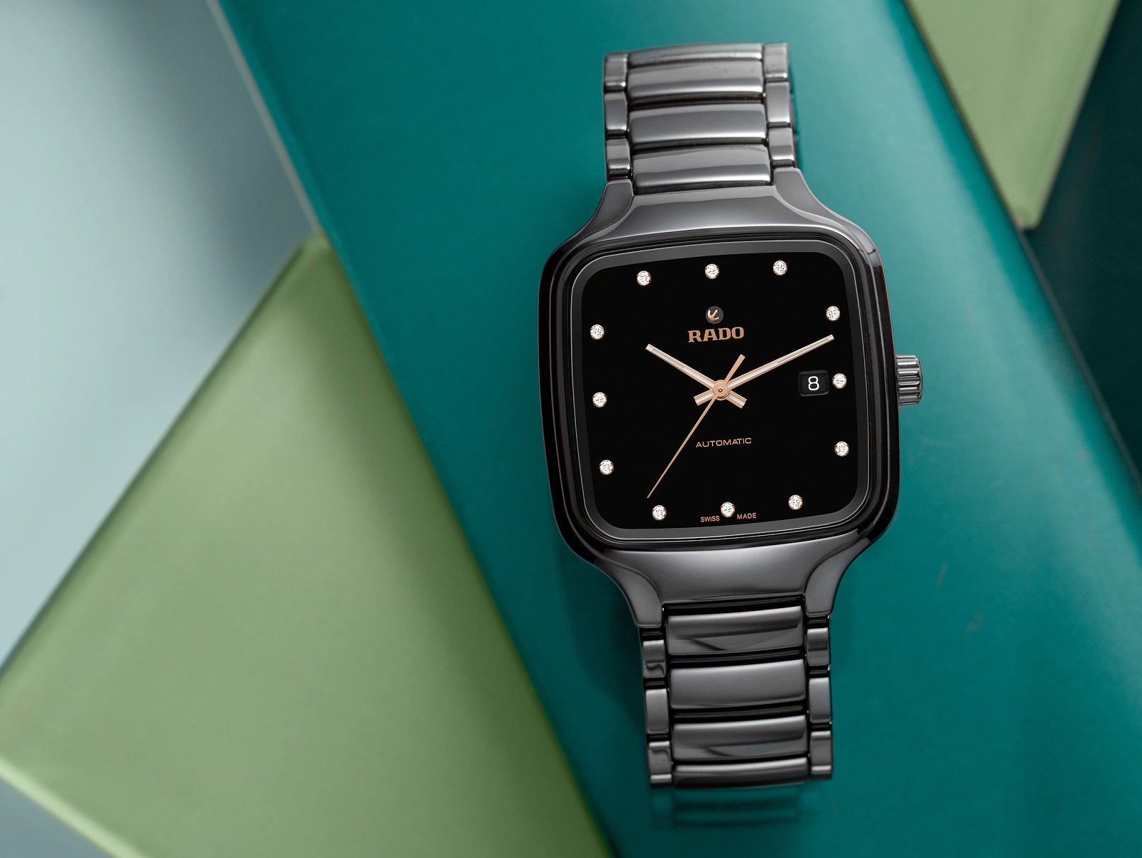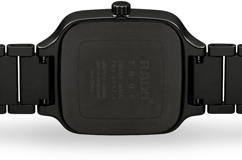Rado True Square Automatic Diamonds R27078702 jsou elegantní unisex hodinky vyrobené ze speciálního materiálu High-Tech Ceramic v černé barvě. Díky tomuto materiálu jsou hodinky lehké, hypoalergenní a odolné vůči poškrábání. Hranaté pouzdro je široké 38 milimetrů. Černý číselník s 12 diamanty o hmotnosti 0,120 ct a ukazatelem data na třetí hodině je chráněn safírovým sklem s oboustrannou antireflexní vrstvou. Ručičky v barvě růžového zlata jsou pro lepší čitelnost za zhoršených světelných podmínek potaženy luminiscenční vrstvou Super-LumiNova®. Pohon hodinek zajišťuje mechanický strojek Rado R763 (03.763.931) s automatickým nátahem a rezervou chodu 80 hodin. Tento strojek s funkcí zastavení vteřinové ručky při vytažení korunky do krajní polohy, pro kterou se vžilo označení hacking, je možné v případě potřeby natahovat i ručně. Díky použití antimagnetického vlásku setrvačky Nivachron™ z titanové slitiny, je tento kalibr vysoce odolný vůči vlivům magnetického pole. Pro dosažení co nejvyšší možné přesnosti je stroj testován v pěti pozicích. Hodinky disponují vodotěsností 5 ATM a jsou tedy odolné proti dešti a při sprchování.