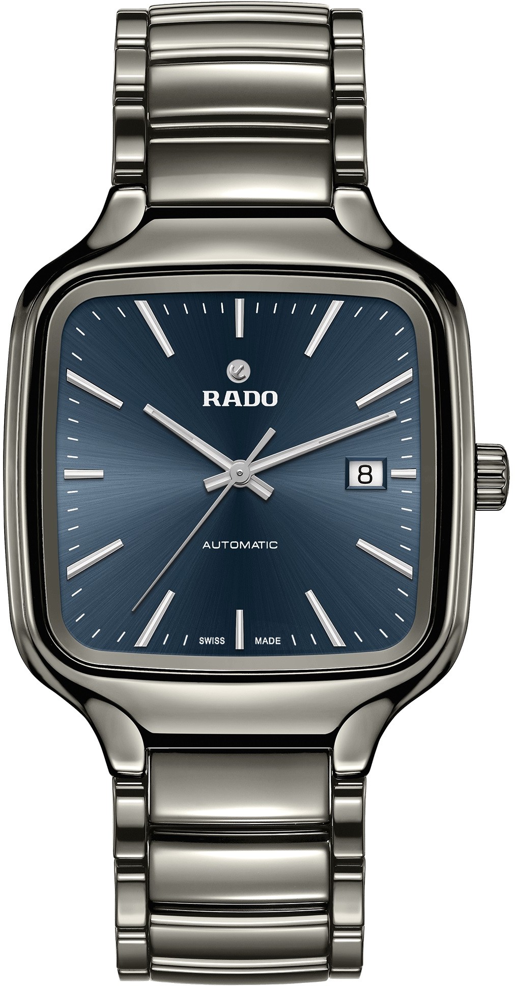Rado True Square Automatic R27077202 jsou elegantní unisex hodinky vyrobené ze speciálního materiálu Plasma High-Tech Ceramic. Díky tomuto materiálu jsou hodinky lehké, hypoalergenní a odolné vůči poškrábání. Hranaté pouzdro je široké 38 milimetrů. Modrý číselník s efektem slunečního brusu a ukazatelem data na třetí hodině je chráněn safírovým sklem s oboustrannou antireflexní vrstvou. Ručičky a indexy jsou pro lepší čitelnost za zhoršených světelných podmínek potaženy luminiscenční vrstvou Super-LumiNova®. Pohon hodinek zajišťuje mechanický strojek Rado R763 (03.763.932) s automatickým nátahem a rezervou chodu 80 hodin. Tento strojek s funkcí zastavení vteřinové ručky při vytažení korunky do krajní polohy, pro kterou se vžilo označení hacking, je možné v případě potřeby natahovat i ručně. Díky použití antimagnetického vlásku setrvačky Nivachron™ z titanové slitiny, je tento kalibr vysoce odolný vůči vlivům magnetického pole. Pro dosažení co nejvyšší možné přesnosti je stroj testován v pěti pozicích. Hodinky disponují vodotěsností 5 ATM a jsou tedy odolné proti dešti a při sprchování.