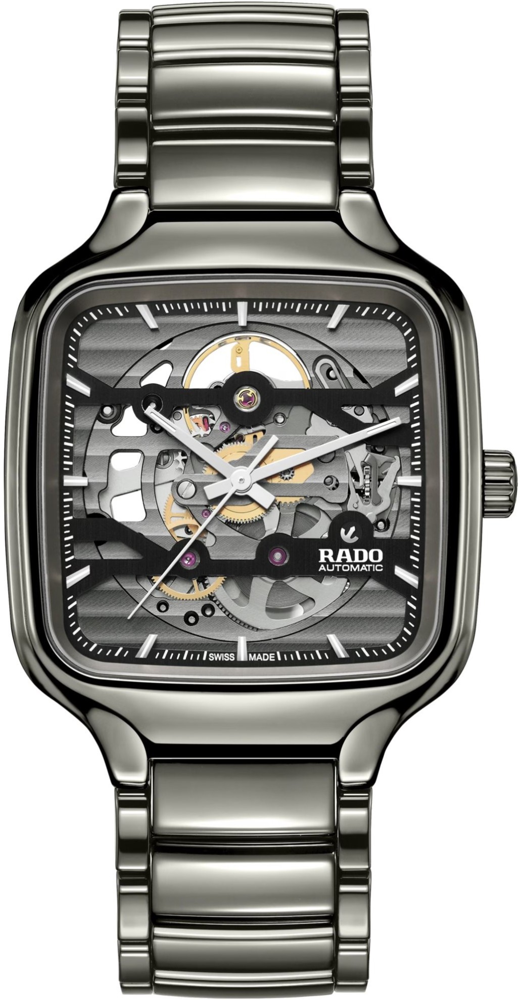Rado True Square Automatic Skeleton R27125152 jsou elegantní unisex hodinky vyrobené ze speciálního materiálu Plasma High-Tech Ceramic. Díky tomuto materiálu jsou hodinky lehké, hypoalergenní a odolné vůči poškrábání. Hranaté pouzdro je široké 38 milimetrů. Ručičky a indexy jsou pro lepší čitelnost za zhoršených světelných podmínek potaženy luminiscenční vrstvou Super-LumiNova®. Černý skeletonový číselník chráněný safírovým sklem s oboustrannou antireflexní vrstvou nabízí spolu s průhledným dýnkem pohled na mechanický strojek Rado R808 (03.808.031) s automatickým nátahem a rezervou chodu 80 hodin, dekorovaný perláží a ženevskými pruhy. Tento strojek s funkcí zastavení vteřinové ručky při vytažení korunky do krajní polohy, pro kterou se vžilo označení hacking, je možné v případě potřeby natahovat i ručně. Díky použití antimagnetického vlásku setrvačky Nivachron™ z titanové slitiny, je tento kalibr vysoce odolný vůči vlivům magnetického pole. Pro dosažení co nejvyšší možné přesnosti je stroj testován v pěti pozicích. Hodinky disponují vodotěsností 5 ATM a jsou tedy odolné proti dešti a při sprchování.